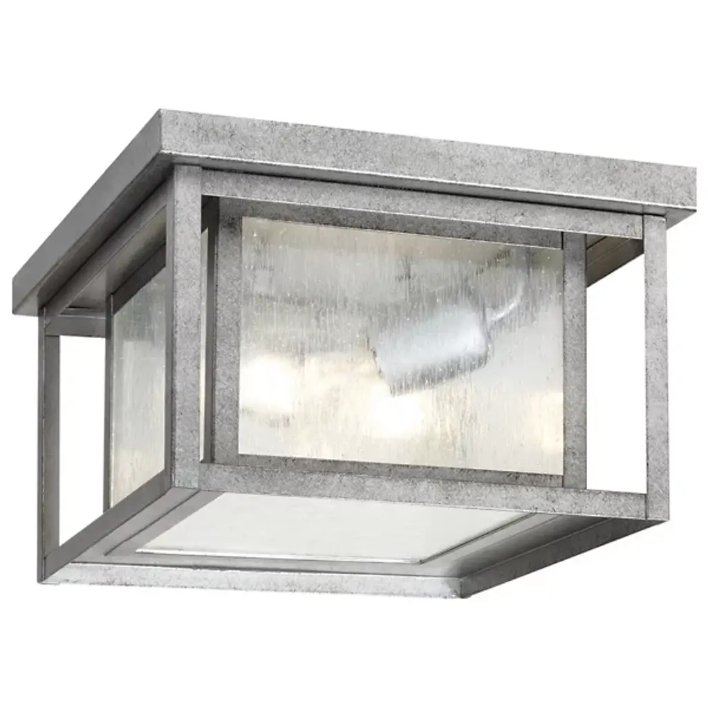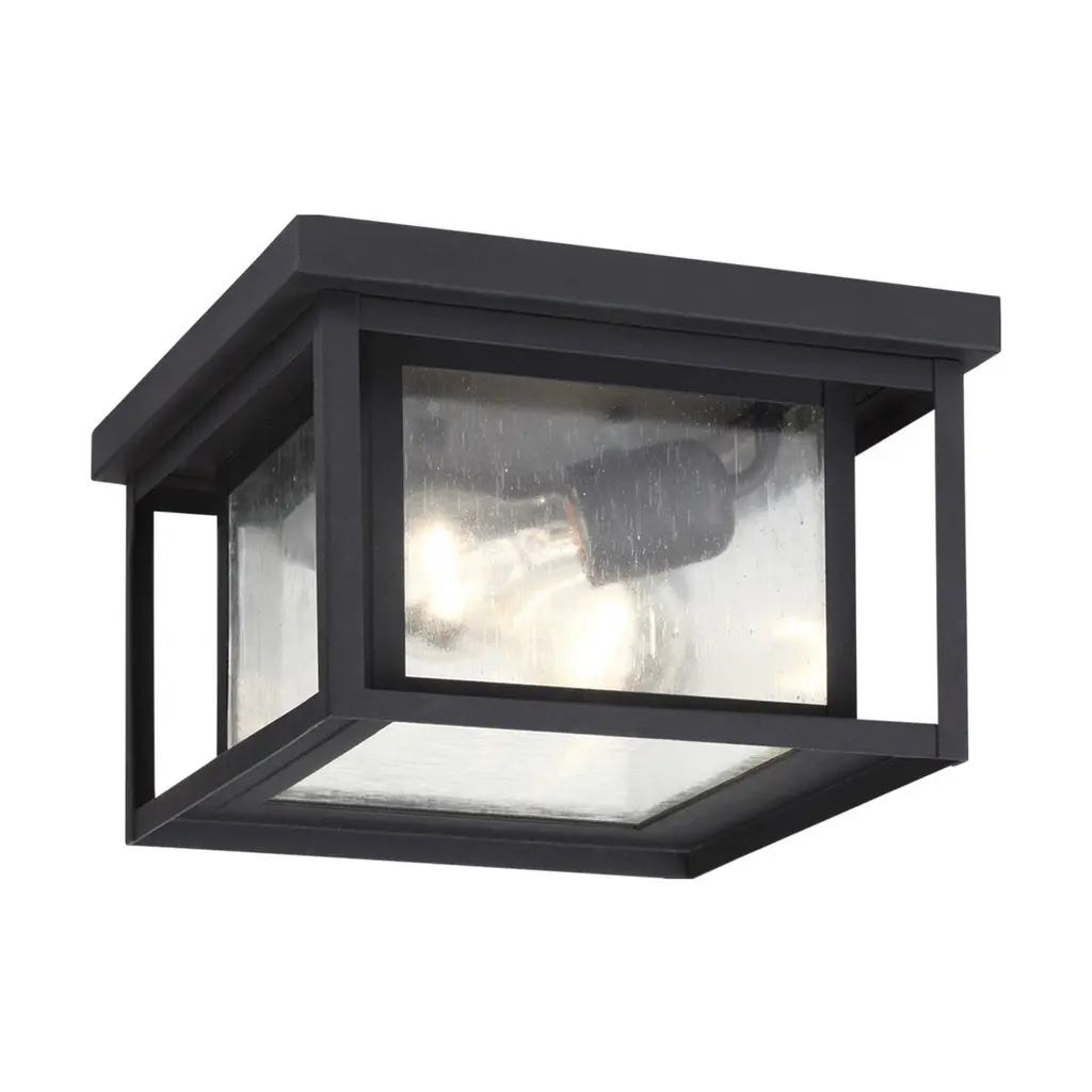 The Hunnington Outdoor Flushmount with Clear Seeded Glass by Generation Lighting, formerly known as Sea Gull Lighting, deploys Shaker minimalism and Arts and Crafts style to enhance your outdoor entry space. Geometric design and Clear Seeded glass panels combine to properly present ambient light to you and your guests. Install with vintage Edison bulbs to further accentuate this fixture.