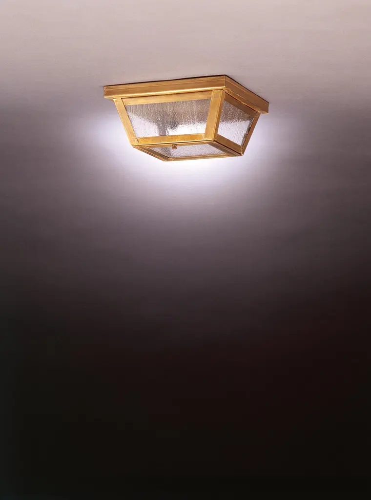 Flush Antique Brass 2 Medium Base Sockets Clear Seedy Glass