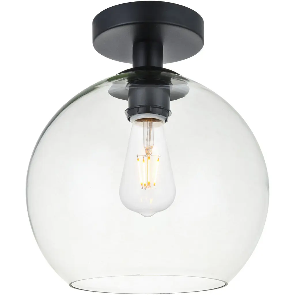 Refined style with a practical design, Huntington flush-mount ceiling lamps bring cosmopolitan sophistication anywhere, especially to an entryway, hallway, bathroom, kitchen, or closet. The smooth iron frame features a disk-shaped canopy and comes in a black finish. The clear spherical glass shade remains open at the center to allow for effortless replacement of the filament-style bulb (not included). Living in the big city has never been this easy.