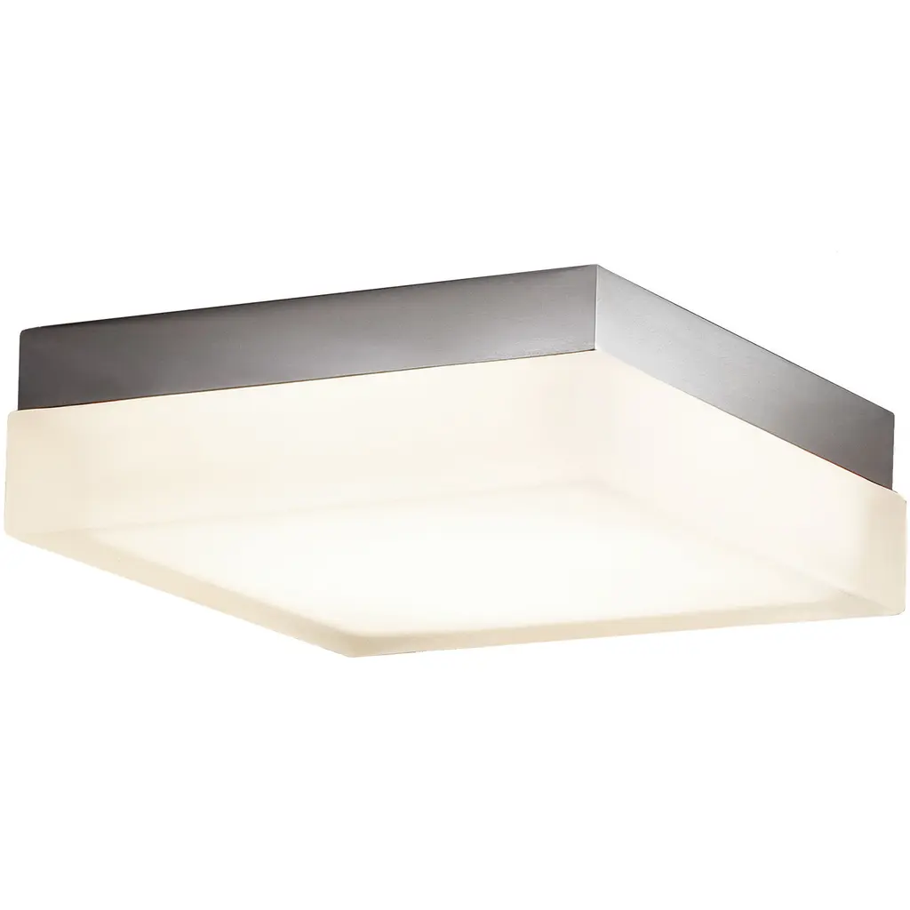 Chill with the IceCube LED Flushmount by Abra. Metal is worked into an innovative cube design to house a luminous LED light. The fixture is angled to draw in your eyes as the orientation is reminiscent of a diamond’s profile. A frosted glass shade preserves the atmosphere of your living area. When used simultaneously with an ELV dimmer, the brightness level of the light stays in your control. The light’s simple design quality allows for uniformity alongside your current contemporary furnishings.