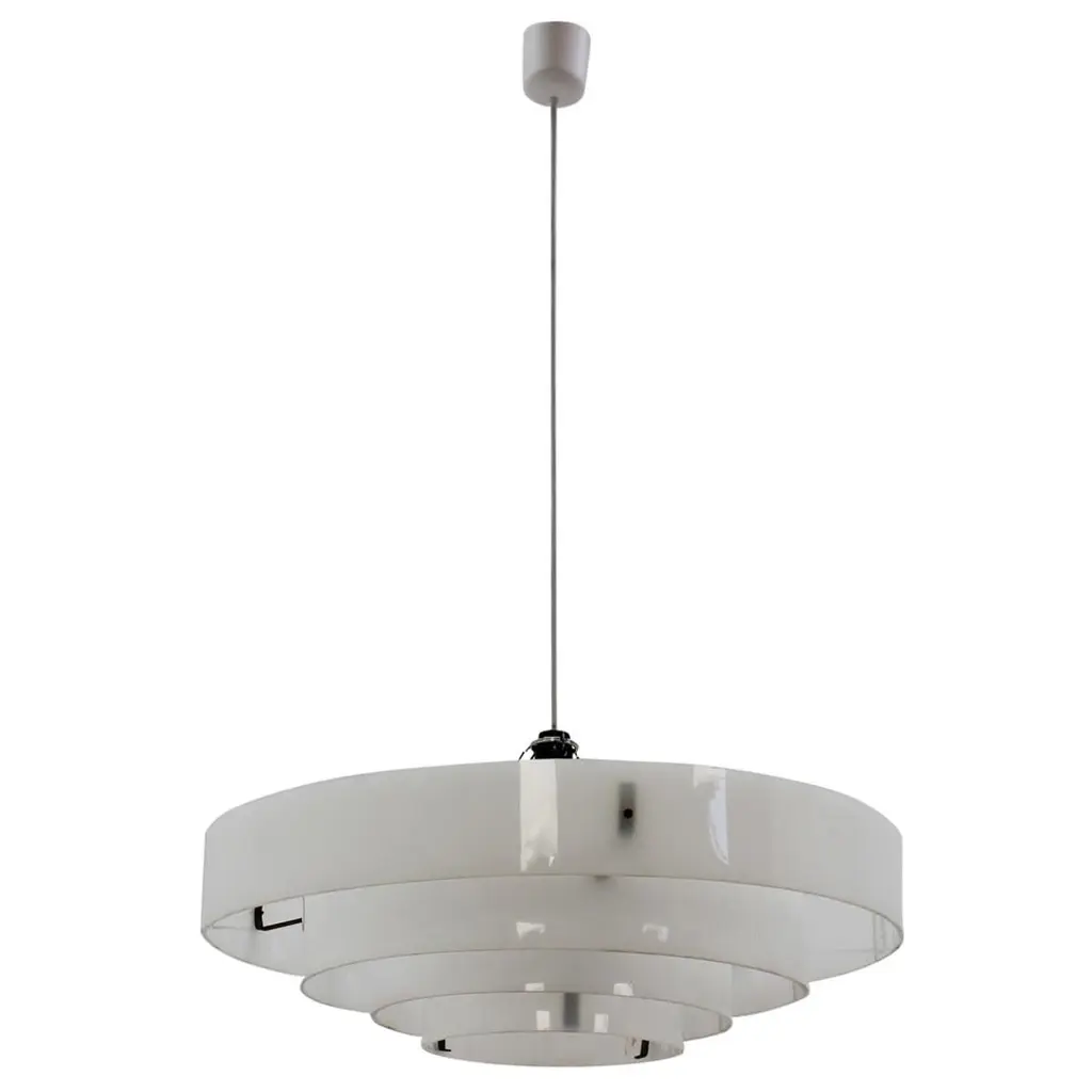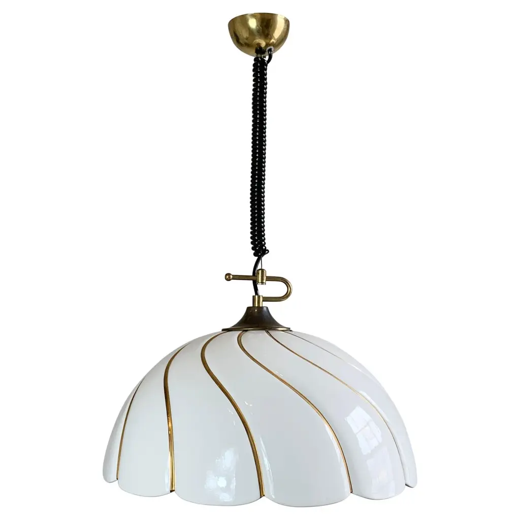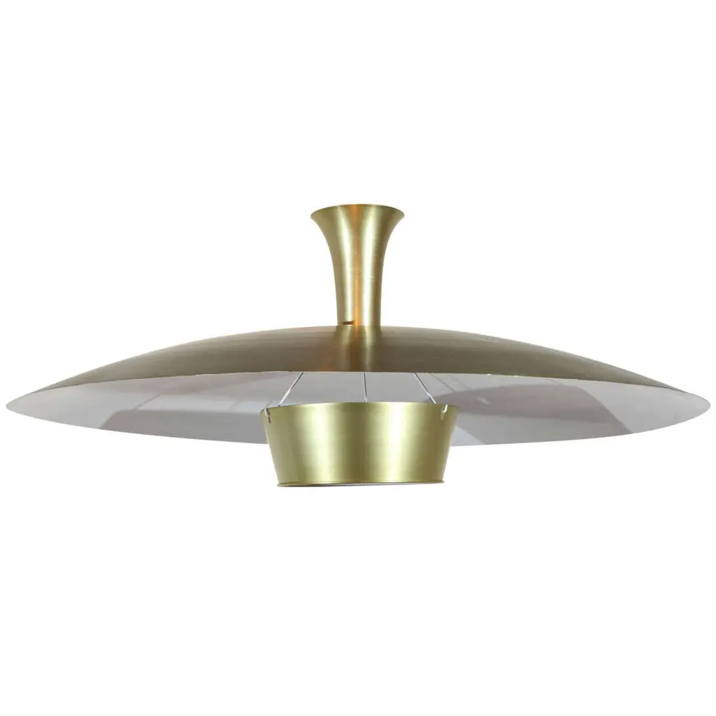 Italian modern chandelier or flushmount shown with smoked amber curved glass shade with a beveled edge and frosted conical glass, mounted on solid polished brass hardware / Made in Italy1 light / E26 or E27 type / max 150WMeasures: Diameter 30 inches, height 22 inches not including chain and canopyOrder only / This item ships from ItalyOrder reference #: FABIOLTD C529