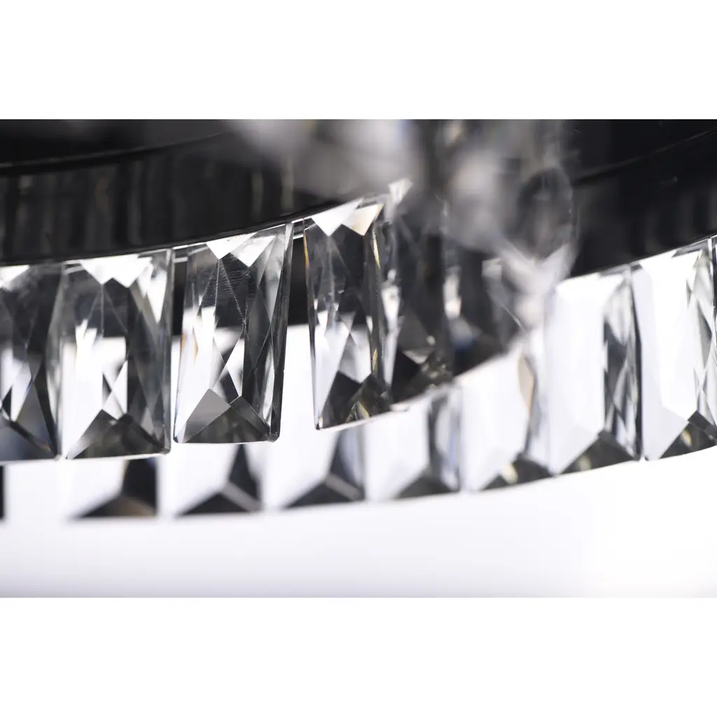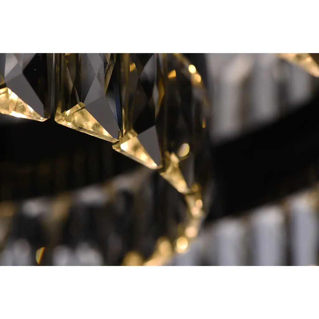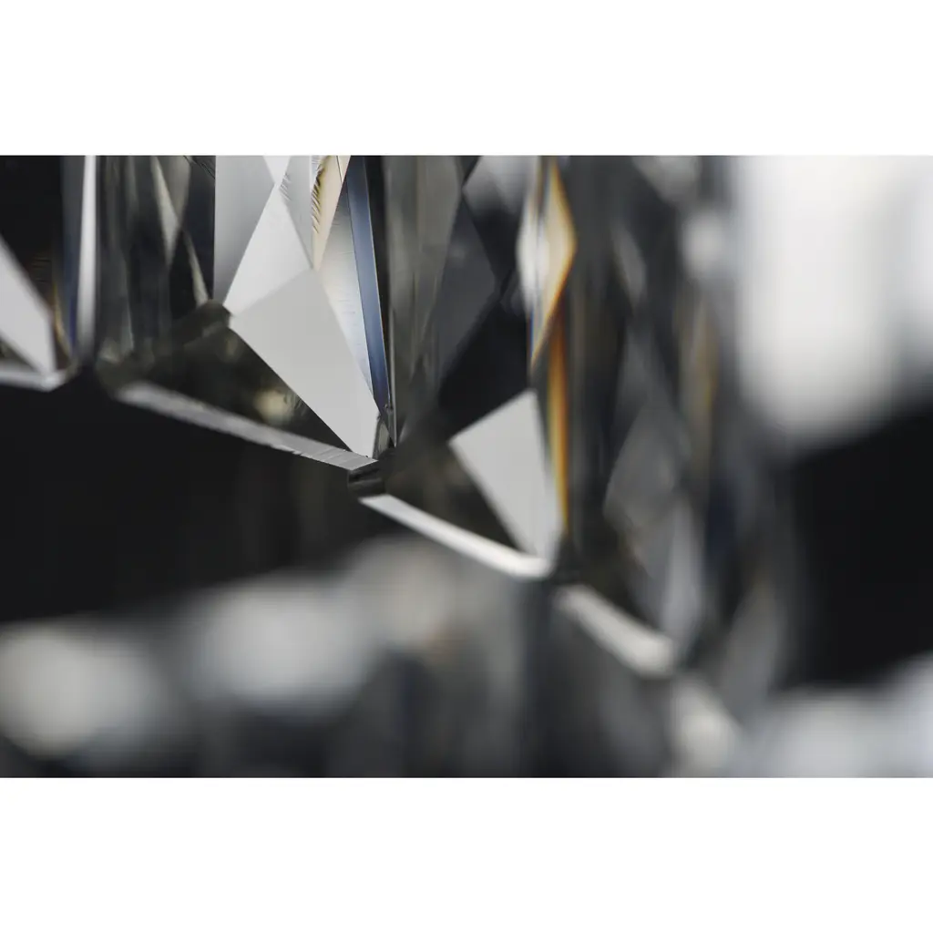 Rectangular Beveled Crystals are suspended from a channel of Polished Chrome. The crystal sparkles and shimmers when illuminated by the LED source encased in the channel. This contemporary will add elegance to a wide variety of room decors.
