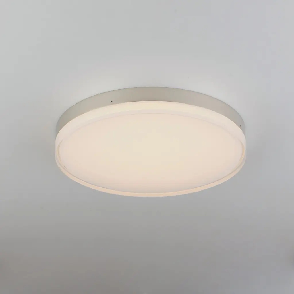 Our ever popular flush mount available in an updated form. Featuring die-cast aluminum bases available in Satin Nickel or Polished Chrome with dimensional acrylic diffusers, Clear on the outside and Frost on the inside creating an intriguing optical effect. With increased lumens and better pricing this collection is the second generation in an already famous collection. Use the optional pendant adapter to convert any size to a hanging fixture.