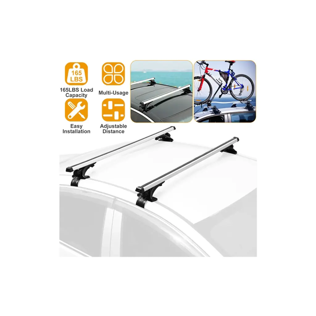 Universal Fit for Most Bare Roofs: These roof rack crossbars are designed to fit most vehicles with a smooth, bare roof (no raised rails, flush rails, fixed points, or factory-installed racks). Ensure your vehicle's roof width is less than 48 inches before purchasing. High Load Capacity: Crafted from durable, lightweight aluminum, these crossbars can support up to 165 lbs, making them perfect for carrying rooftop accessories like luggage, camping gear, bikes, fishing poles, kayaks, and more. Versatile Usage: Ideal for carrying various items, including camping gear, luggage, bikes, snowboards, kayaks, and canoes. Perfect for all your outdoor adventures. Vehicle Protection: Includes 3 sets of sturdy clips of varying sizes to ensure a secure fit on your car's window frames. Rubber pads are also provided to protect your vehicle from damage and scratches during installation and use. Easy Installation: No drilling or cutting required. These crossbars come with all the necessary installation tools and can be quickly assembled and disassembled in minutes. Suitable for vehicles without side rails. Specifications: Brand: iMounTEK Material: Aluminum Alloy Placement: Roof Fits Vehicles: Bare Roof (No Side Rails) with a roof width of less than 48 inches Load Capacity: 75kg / 165 lbs Crossbar Dimensions: 47.2 x 1.57 x 1 inches (120 x 4 x 2.5 cm) Item Weight: 12 lbs (5.45 kg) Package Size: 47.63 x 5.90 x 4.33 inches (121 x 15 x 11 cm) Package Weight: 12.4 lbs (5.65 kg) Package Includes: 2 x Crossbars with Built-In Strips 4 x Tower Feet 2 x Rubber Strips 12 x Mounting Brackets 4 x Rubber Pads for Tower Feet 4 x Knobs 4 x End Caps 8 x Nuts and Nut Covers 8 x Black Screws, 4 x Silver Screws 8 x Washers 4 x Rubber Pads for Mounting Brackets 1 x User Manual
