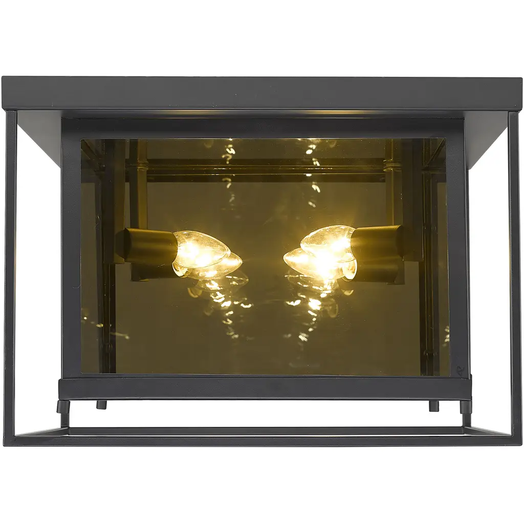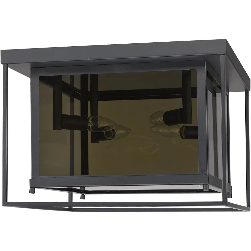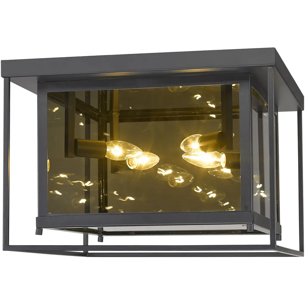 Choose this decadent contemporary four-light flush mount light for its chic blend of steel and mirror, and a geometric linear silhouette that updates modern living areas including dining rooms, foyers, and hallways. A double frame made from misty charcoal finish steel joins both clear and smoke glass to deliver a soothing, atmospheric aesthetic with plenty of inspiration. Candelabra bulb mounts create an opportunity to change up the motif and fit into transitional spaces.