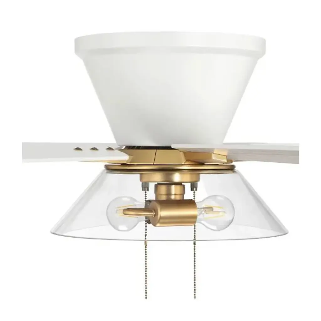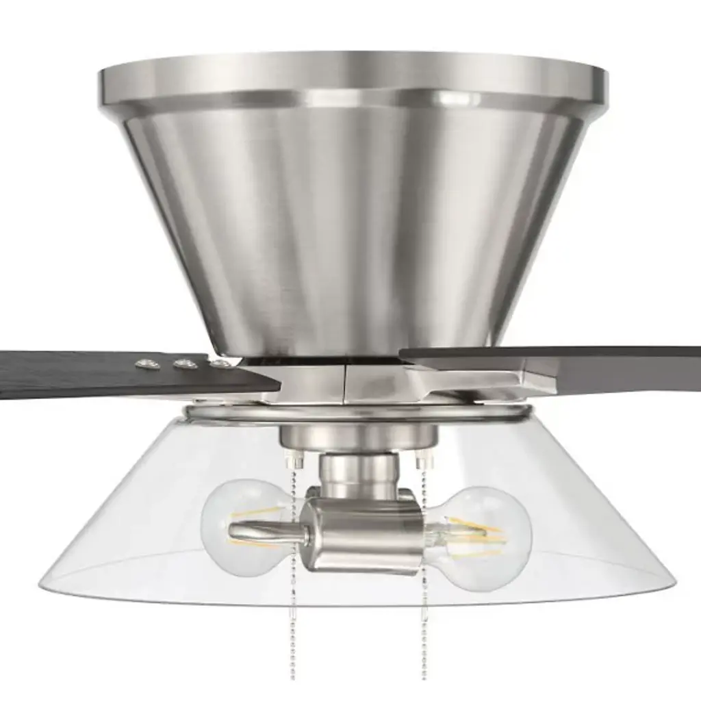 The Insight Flushmount Ceiling Fan with Light Kit from Craftmade Fans is elegant and contemporary. It is composed of aluminum and plywood and is powered by a DC motor, which allows its 5 blades to operate easily. The blades rotate at 3 speeds, and the airflow direction can be adjusted using the reverse switch on the control. A light kit allows integrated LED light to emanate from a refined glass shade.