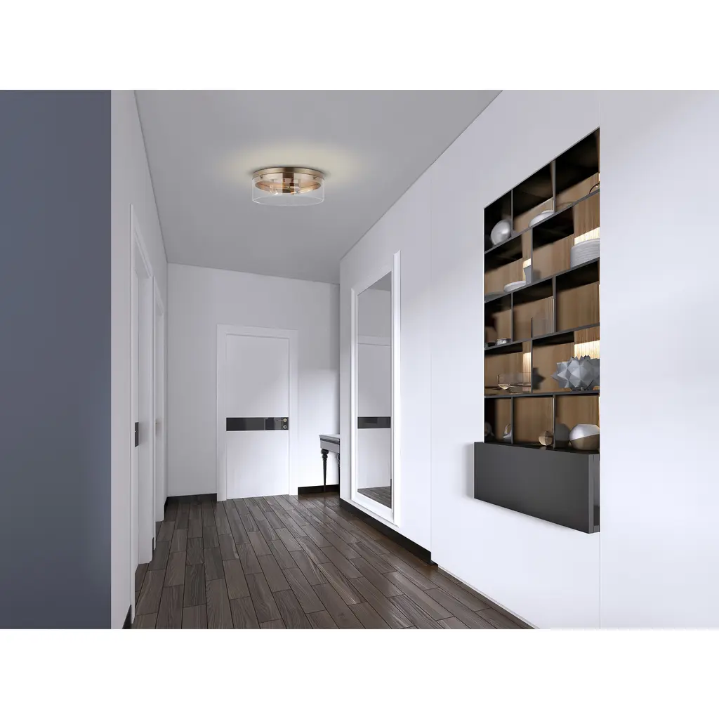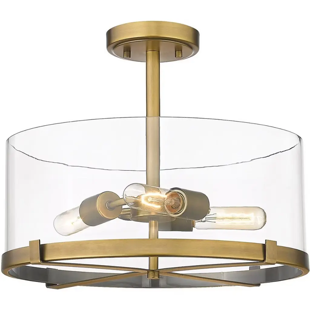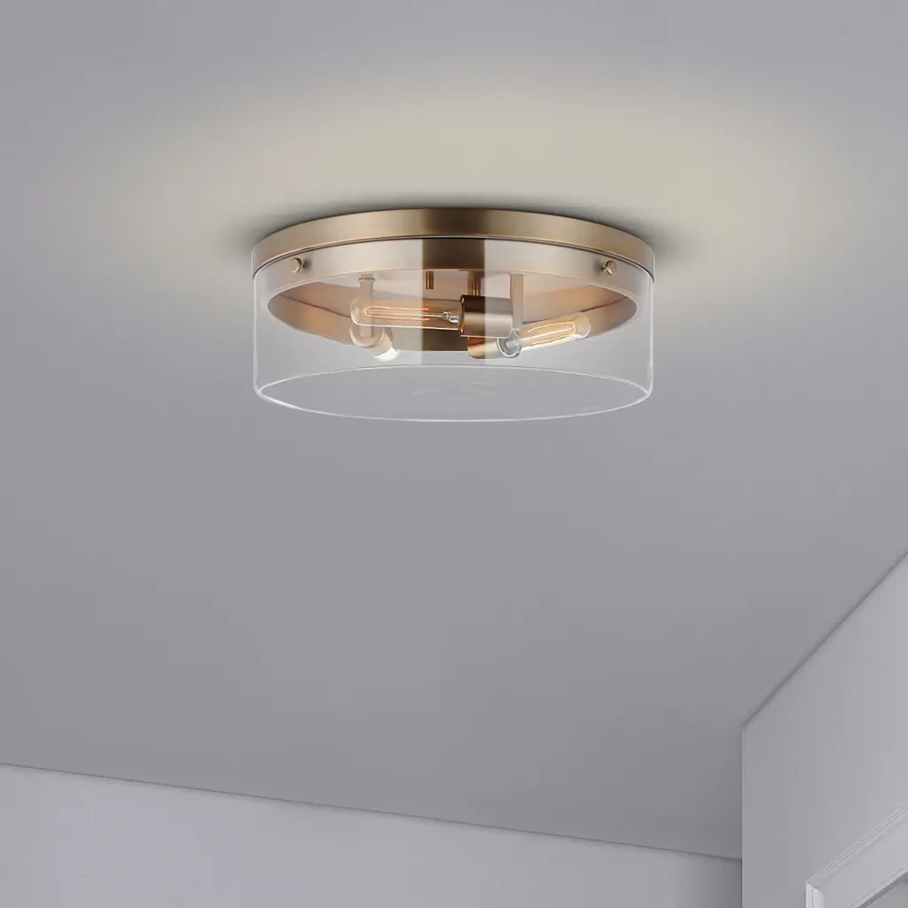 Intersection Large Flush Mount Fixture - Burnished Brass with Clear Glass
