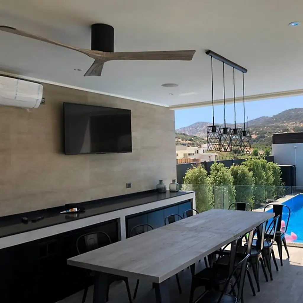 The rustic modern aesthetic of the Atlas Fan Company Irene-H Flushmount 3 Blade Ceiling Fan is a great addition to any contemporary living space. This flush mount fan has a cylindrical motor housing that sits atop three solid wooden blades that cut through the air for refreshing circulation. Its DC motor showcases the latest in fan technology, being energy-efficient, ultra-quiet, six-speed, and reversible. Comes with a six-speed, reversible, handheld/wall-mountable remote control.
