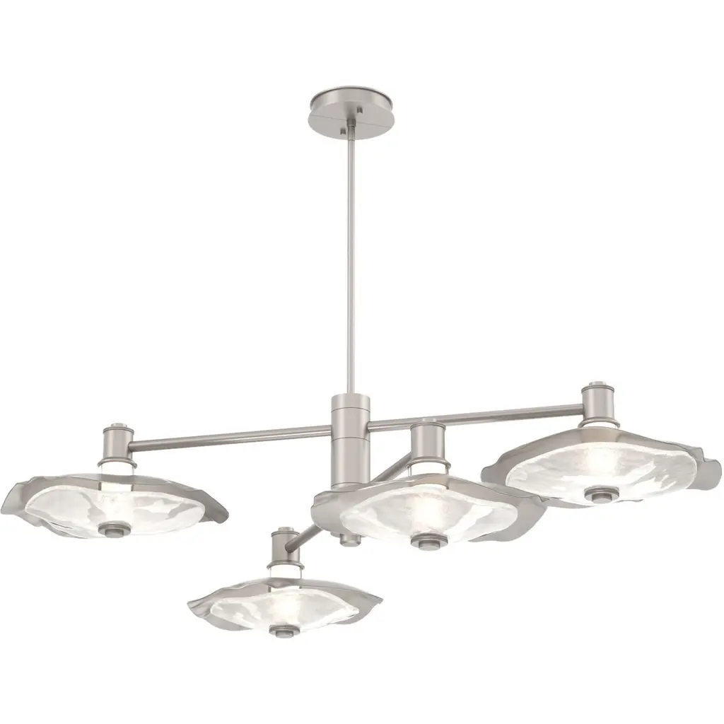 The Iris N.3 ceiling light is designed around three expansive acrylic shades with hand carved glass centers. This versatile fixture can be installed on a stem or as a flush mount. The first images show the fixture in our satin brass finish-subsequent pictures show it in a selection of alternative finishes. Starts at $13,800.00 in polished or satin brass. With premium finishes the price starts at $15,200. For more configurations see the Iris, Iris Piccolo, Iris N.2 and Iris N.5.Customization Options:Each fixture is hand crafted in Italy and can be customized in size, layout and number of shades. Available in any of our 10 finishes and 8 enamel colors. Compatible with our carved glass. Can be installed as a flush mount or on a stem.Lead Time: 10-12 weeks plus shipping. Measures: Diameter: 52”Height: Minimum 7”- stem height as requestedElectrical: Nine E12 40W incandescent or 75W LED equivalentModel#: LTZ900C.