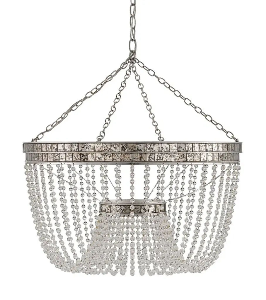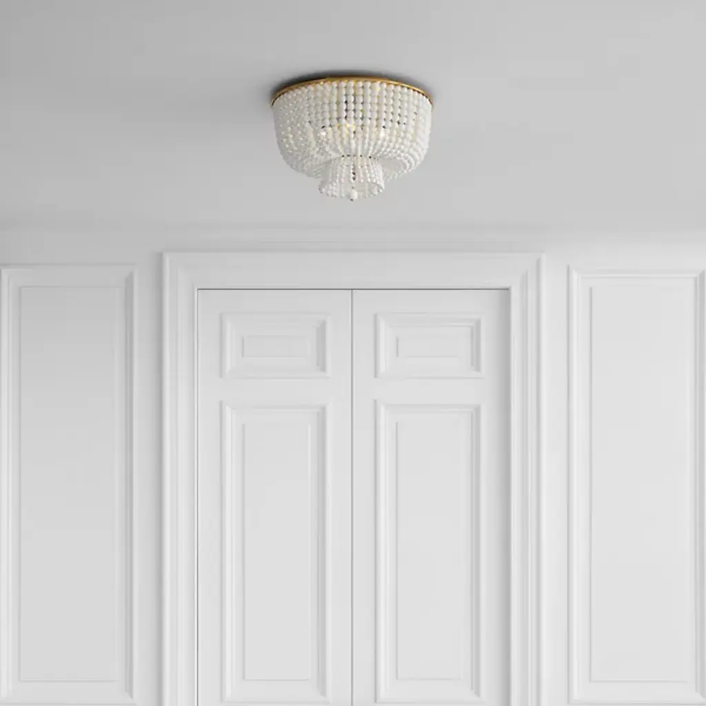 Give your décor a traditional flourish with the Jacqueline Flushmount by Visual Comfort Signature, formerly known as Visual Comfort, Its familiar free-hanging form is articulated by individual strands of decorative beads (including a central bead accent) and supported by a low-profile metal frame. The beads act as a shade for internal lamping, creating a sophisticated, shimmering ambiance that leaves a lasting impression.