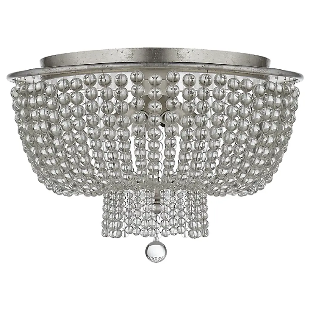 Give your décor a traditional flourish with the Jacqueline Flushmount by Visual Comfort Signature, formerly known as Visual Comfort, Its familiar free-hanging form is articulated by individual strands of decorative beads (including a central bead accent) and supported by a low-profile metal frame. The beads act as a shade for internal lamping, creating a sophisticated, shimmering ambiance that leaves a lasting impression.