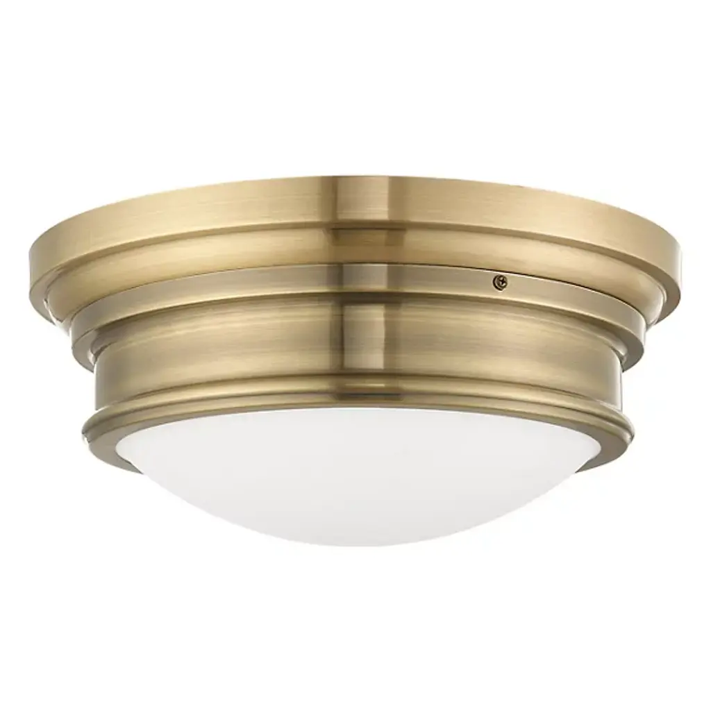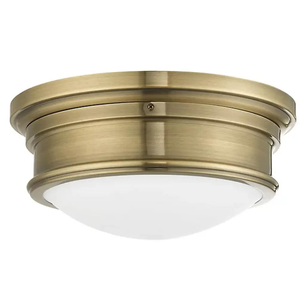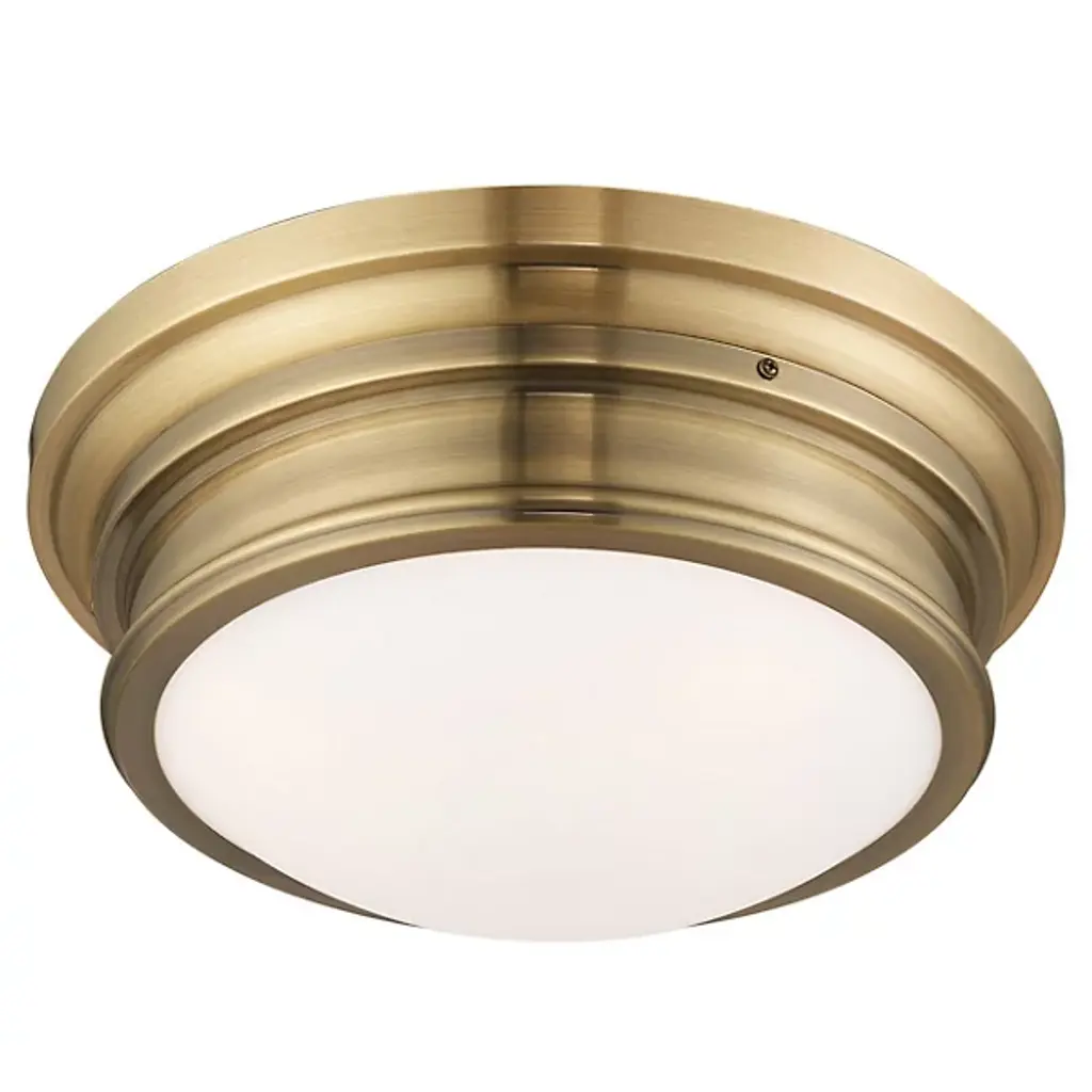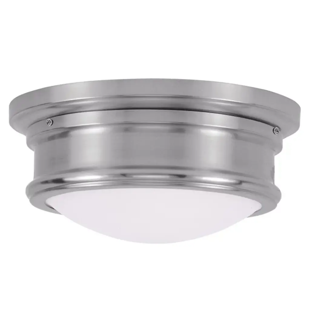 A simple and sleek modern piece made to work with a range of home décor choices, the Jalissa Flushmount from Alder & Ore mounts directly to the ceiling with a clean construction of smooth metal. The round silhouette creates a flush look as it lowers into the room, presenting a curving hand-blown satin white glass shade. The set of crisp bulbs behind the shade bring it to life with a warm and even glow.