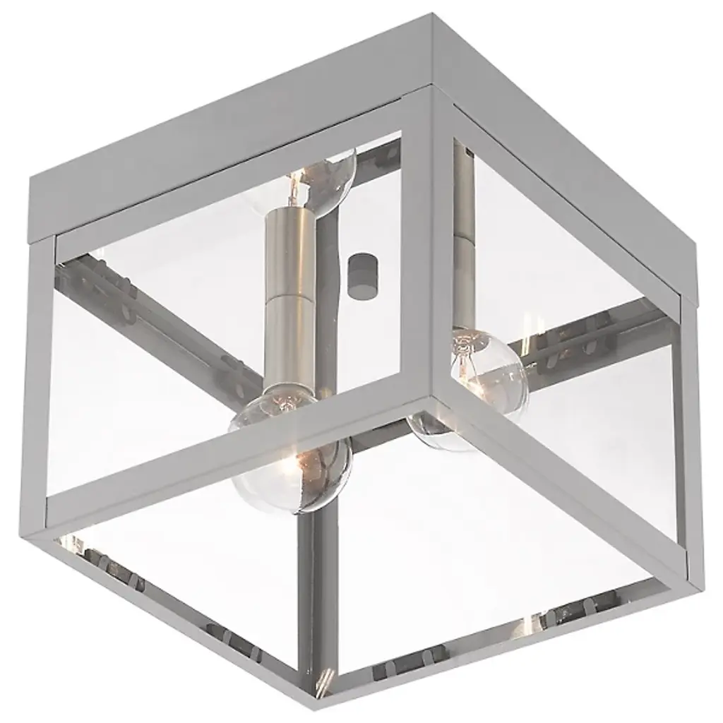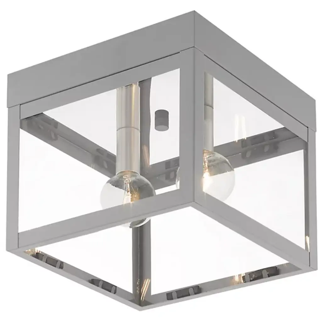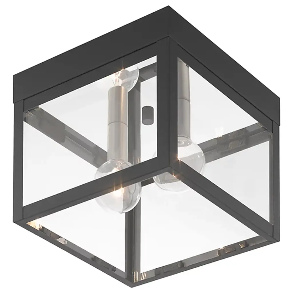 The James Outdoor Flushmount from Alder & Ore blends in with the architectural lines of the home exterior while adding a shimmering note. Its geometric form complements modern and contemporary settings. Made from metal, the structural cube stays solid while out in the elements. Clear glass panels line the piece to serve as a protective display for the lamping. Candelabra bulbs produce an inviting shine. The bulb’s light radiates through the glass as a warm aura.