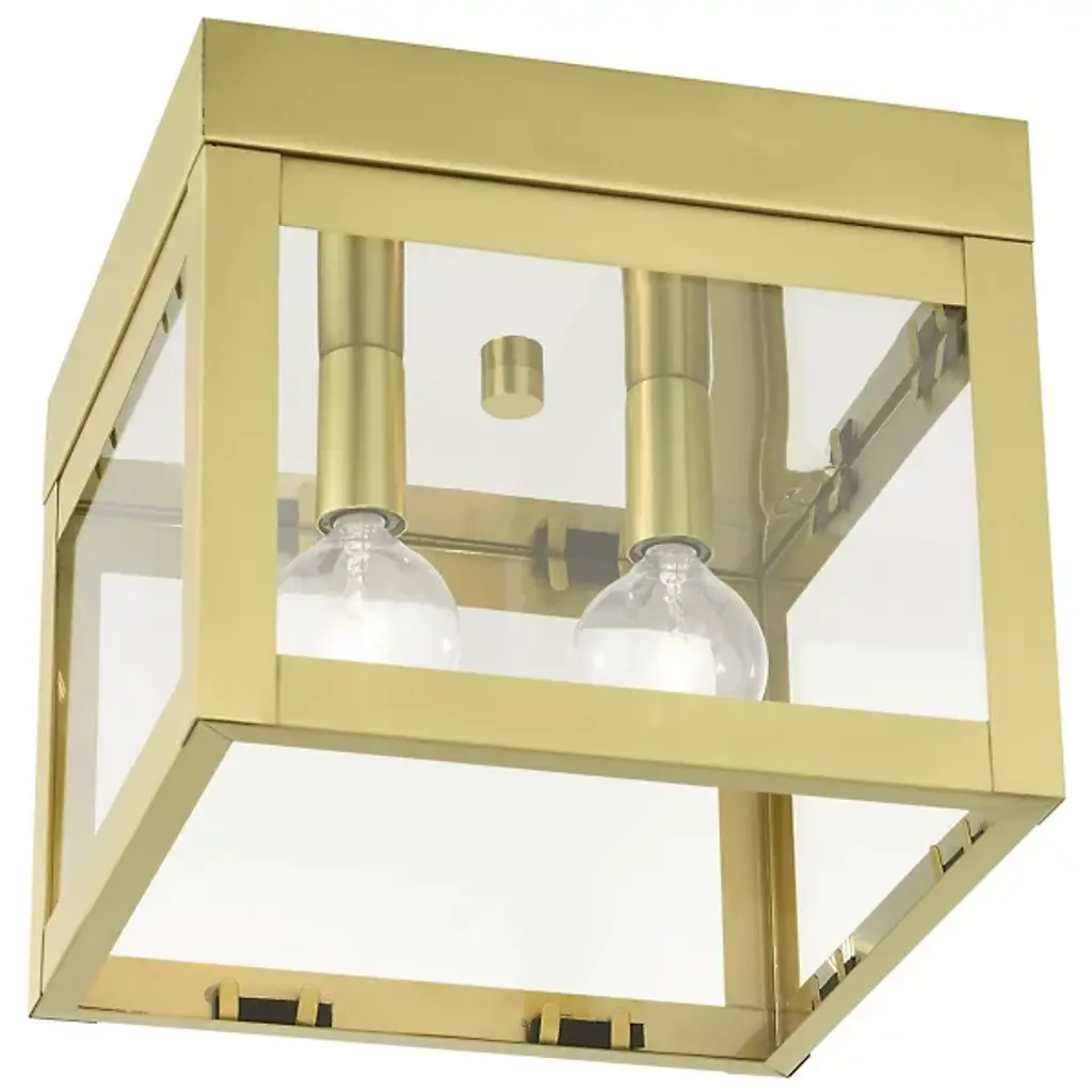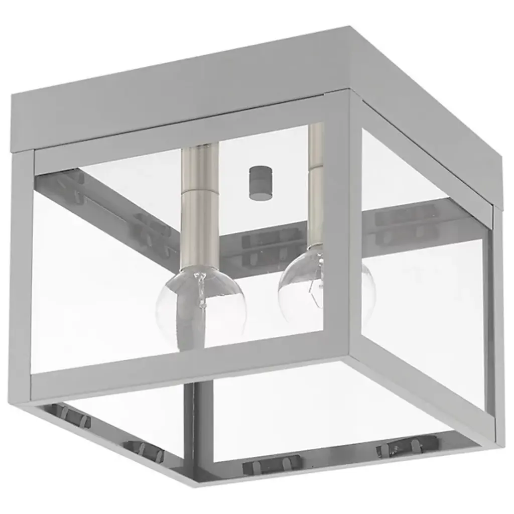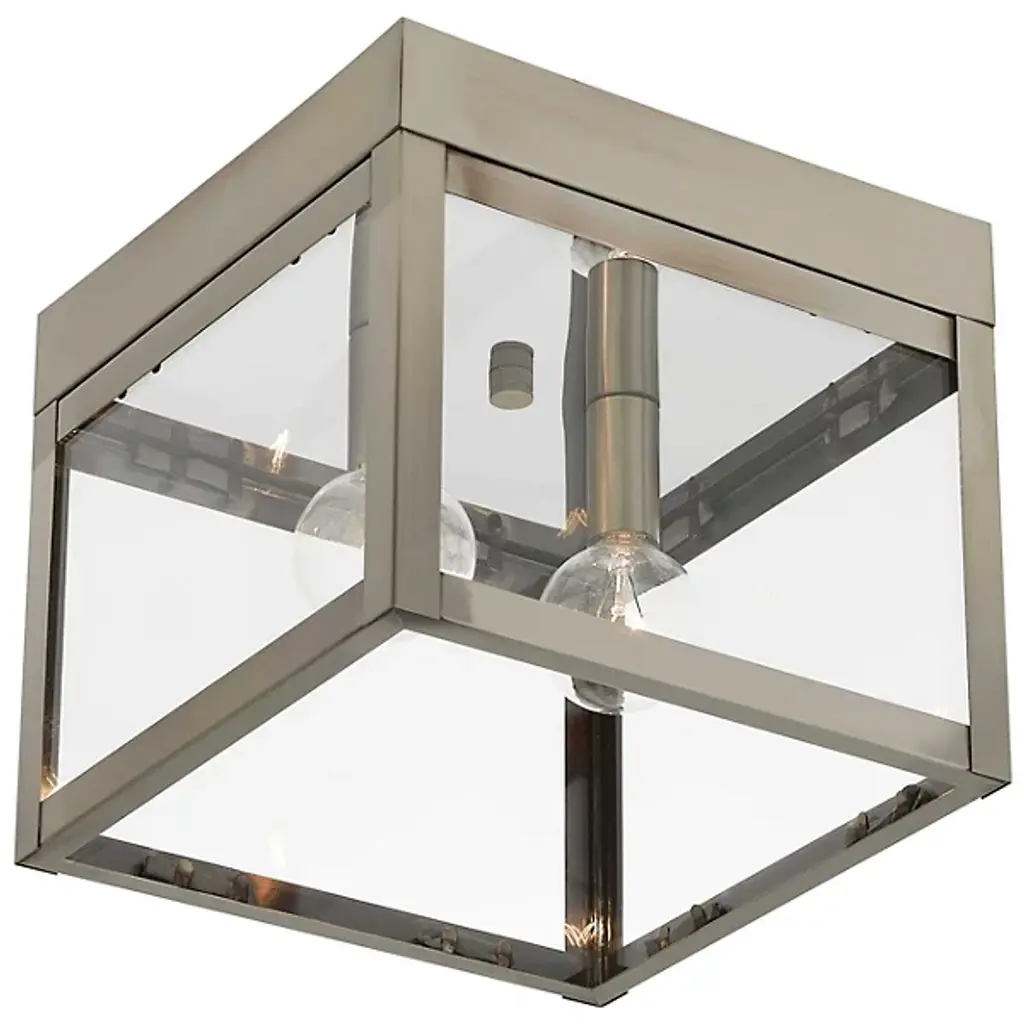 The James Outdoor Flushmount from Alder & Ore blends in with the architectural lines of the home exterior while adding a shimmering note. Its geometric form complements modern and contemporary settings. Made from metal, the structural cube stays solid while out in the elements. Clear glass panels line the piece to serve as a protective display for the lamping. Candelabra bulbs produce an inviting shine. The bulb’s light radiates through the glass as a warm aura.