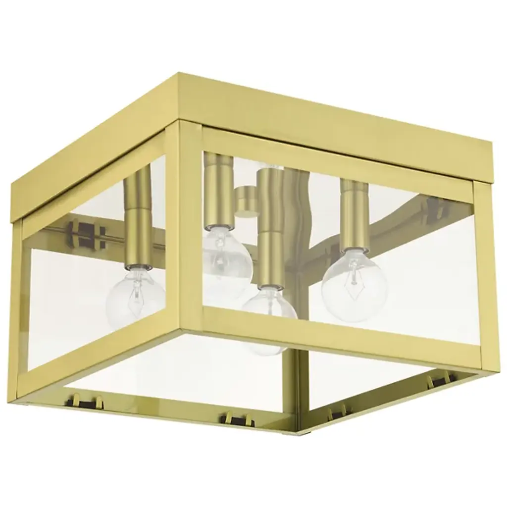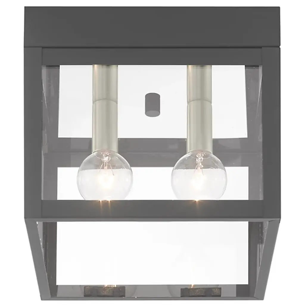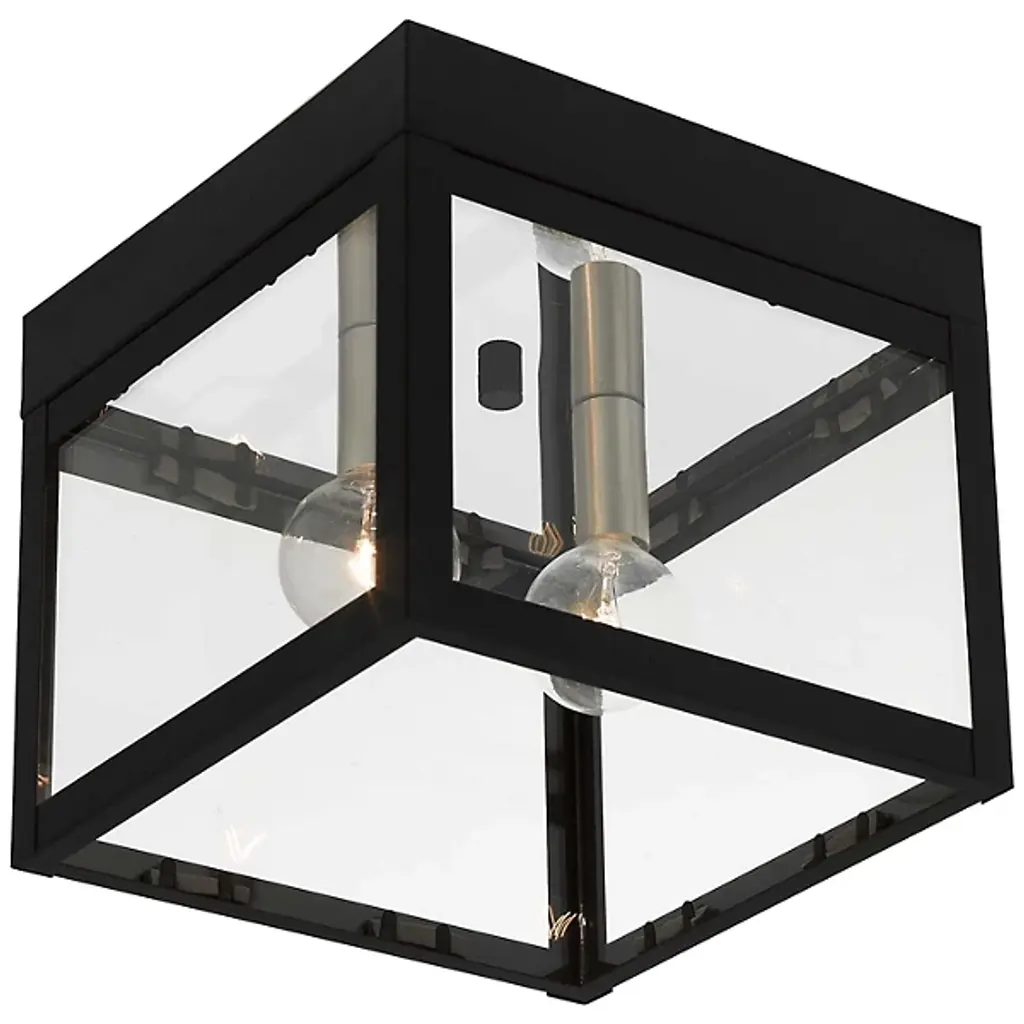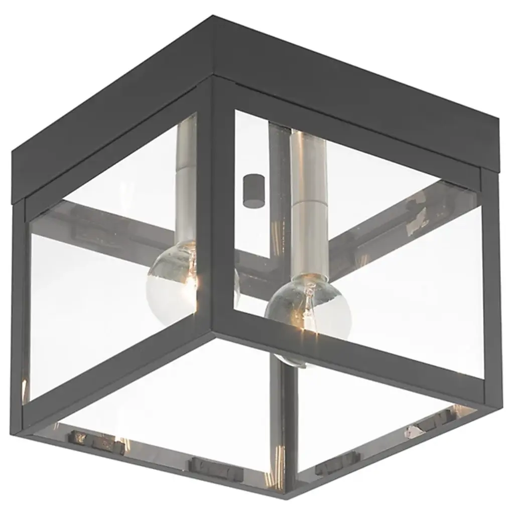 The James Outdoor Flushmount from Alder & Ore blends in with the architectural lines of the home exterior while adding a shimmering note. Its geometric form complements modern and contemporary settings. Made from metal, the structural cube stays solid while out in the elements. Clear glass panels line the piece to serve as a protective display for the lamping. Candelabra bulbs produce an inviting shine. The bulb’s light radiates through the glass as a warm aura.