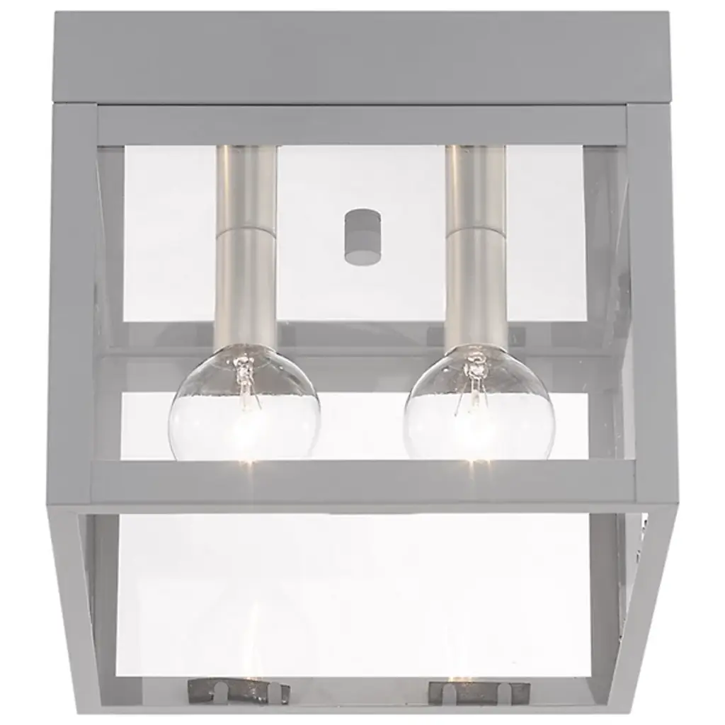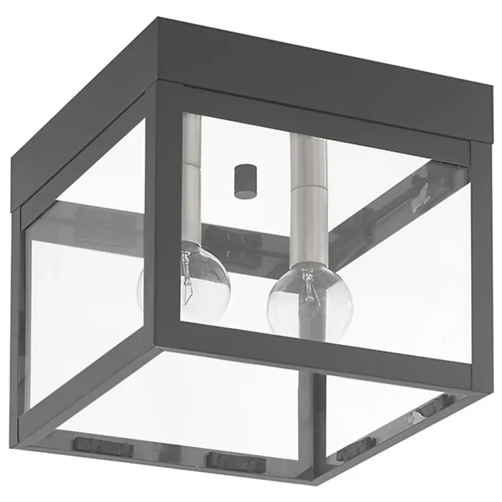 The James Outdoor Flushmount from Alder & Ore blends in with the architectural lines of the home exterior while adding a shimmering note. Its geometric form complements modern and contemporary settings. Made from metal, the structural cube stays solid while out in the elements. Clear glass panels line the piece to serve as a protective display for the lamping. Candelabra bulbs produce an inviting shine. The bulb’s light radiates through the glass as a warm aura.