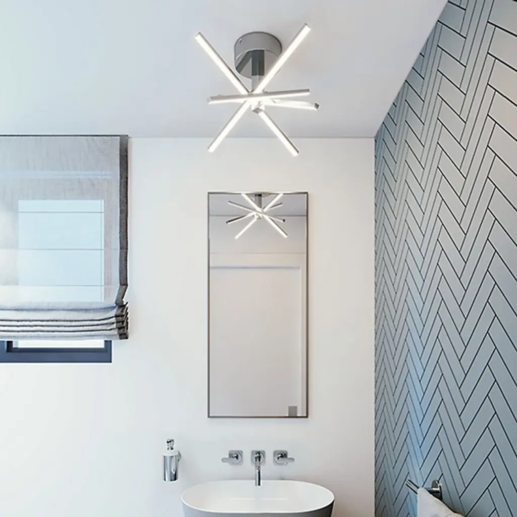 A study in geometric balance. Intersecting linear pieces make up the design of the Jaxx LED Flushmount by AFX, which is made of Metal and has a unique Acrylic lens shade. This ceiling fixture makes an amazing centerpiece for any room while maintaining a sleek, contemporary aesthetic that goes with anything. Whether it's mounted on its own as an accent or used in a series to create a statement-making ambiance, the styling of this ceiling light will lend a modern flair to the home. Brighten up the bedroom, living room, dining room, foyer or home office with this sophisticated addition.