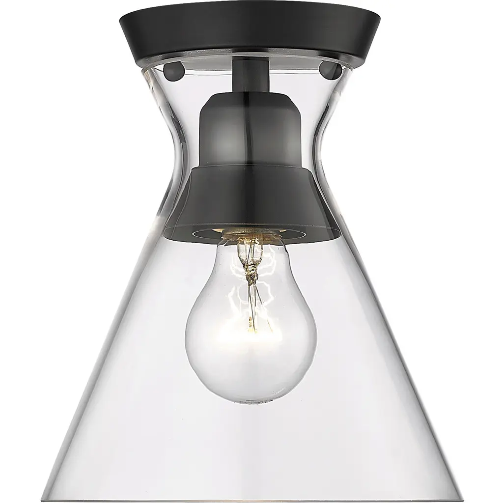 Upscale sophistication with a Mid Century Modern vibe tells the story of this elegant one-light wall flush mount ceiling light. A blend of delightful materials offers a stunning large glass shade with bold Matte Black finish metal, delivering a prominent aesthetic and targeted lighting in a nook or reading space.
