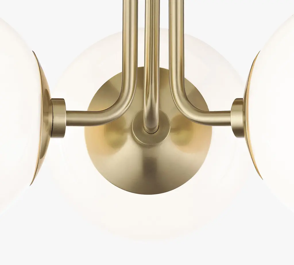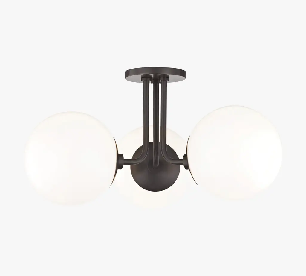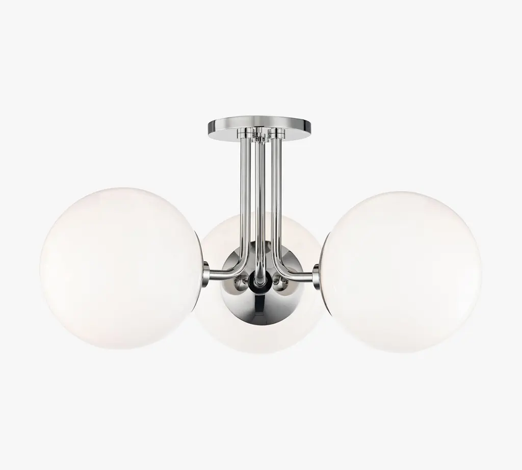 For a design that makes elegance easy, add this triple flush mount fixture to ground your room in good style. The frosted globe shades are shape-neutral, and the slim metal arms and round base keep the classic look fresh. Available in your choice of finish and a number of other sconce configurations, pendant, flush mount, or chandelier designs.