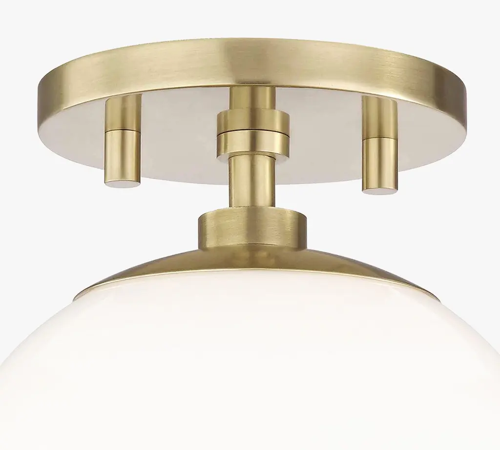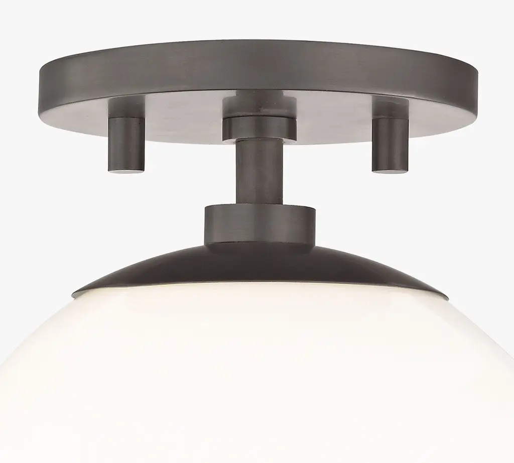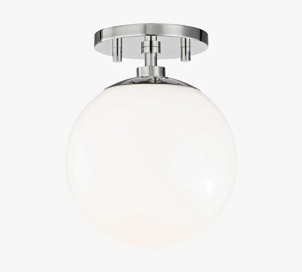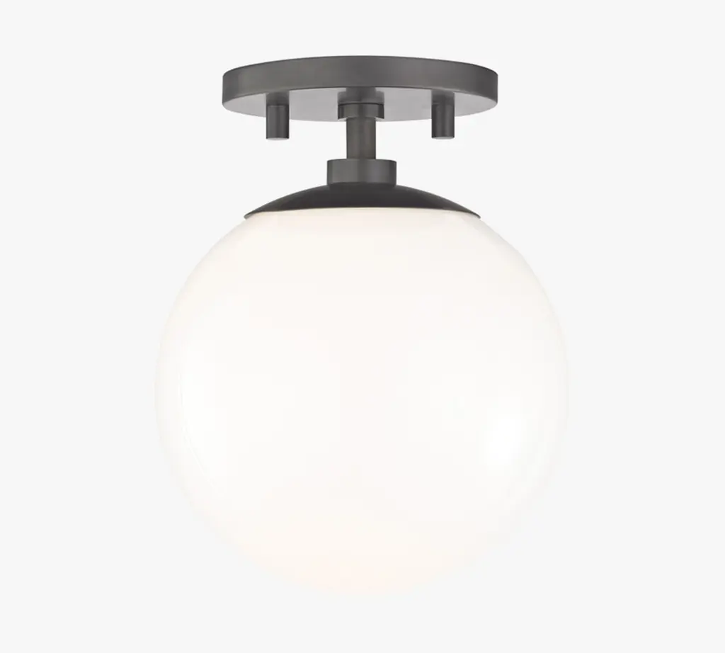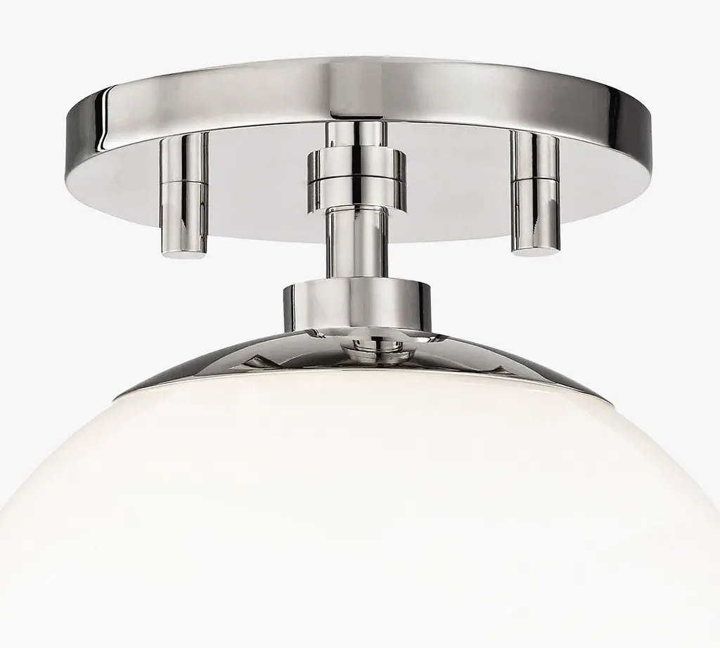 For a design that makes elegance easy, add this flush mount fixture to ground your room in good style. The frosted globe shade is shape-neutral, and the slim metal arms and round base keep the classic look fresh. Available in a number of sconce configurations, pendant, or chandelier designs.