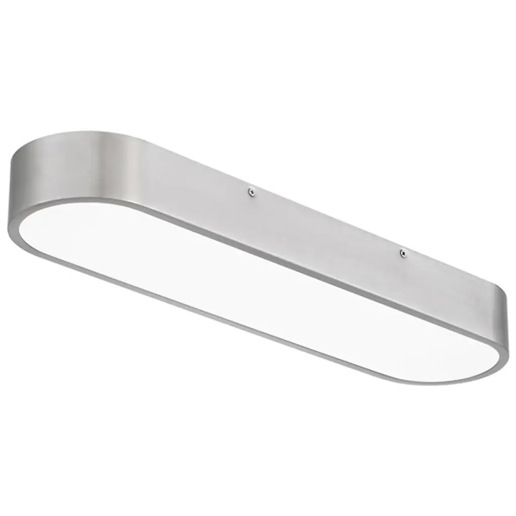 The Juniper LED Flushmount by Quoizel integrates well into modern and contemporary environments, incorporating a sleek and minimalist design into its environment. Its elongated silhouette is complemented by a white acrylic shade that rests inside it, the simple form exuding understated elegance. The fixture features integrated LED lamping, offering low maintenance and energy-saving advantages, ensuring efficient illumination for any space. With its oval frame featuring an inset diffuser, this fixture combines functionality with refined aesthetics, embodying the essence of contemporary style while providing versatile lighting solutions.