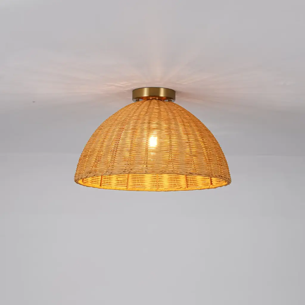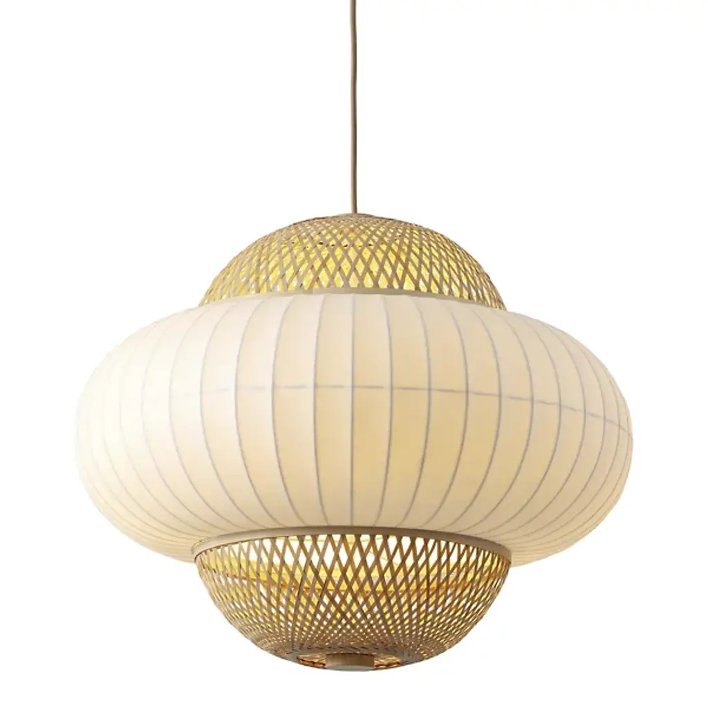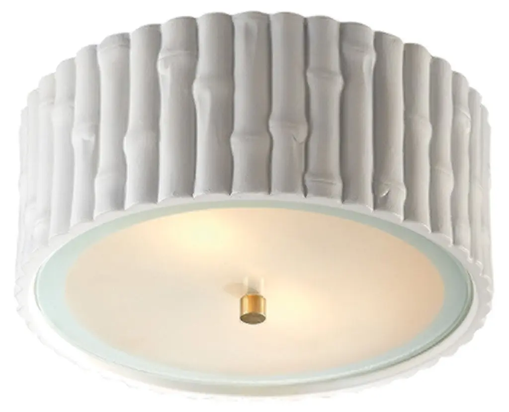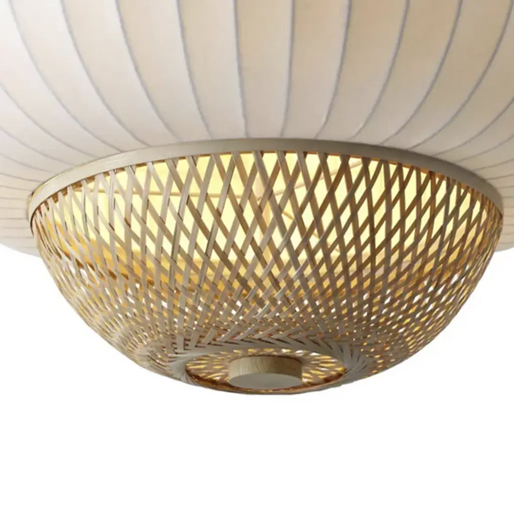 The Kallen Flushmount from Alder & Ore unifies Art Deco style and Japanese minimalism. It features a silk bamboo woven shade defined by its ring-shaped crown and diamond-shaped profiles that appear in the woven sections. Durable aluminum keeps this flushmount reinforced as it balances overhead. Brilliant LEDs illuminate this fixture for enhanced visibility throughout your environment. A disc-shaped embellishment at the end of the shade adds the final touch.