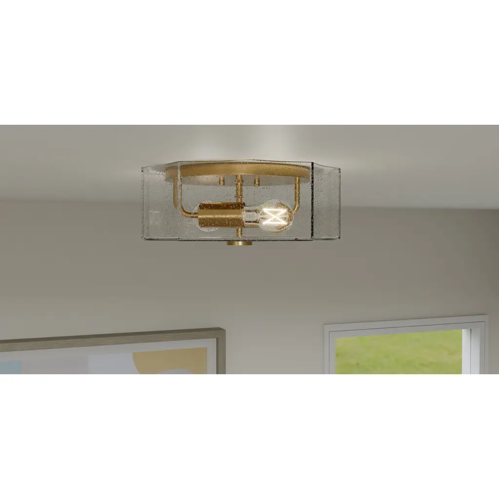 Inspired by a classic silhouette, Kaplan offers beautiful illumination for your home. This stunning flush mount ceiling light features exposed bulb sockets, allowing the light to shine softly through the clear seedy glass. Kaplan is available in two lustrous finishes: choose from aged brass or polished chrome to complement any home decor.