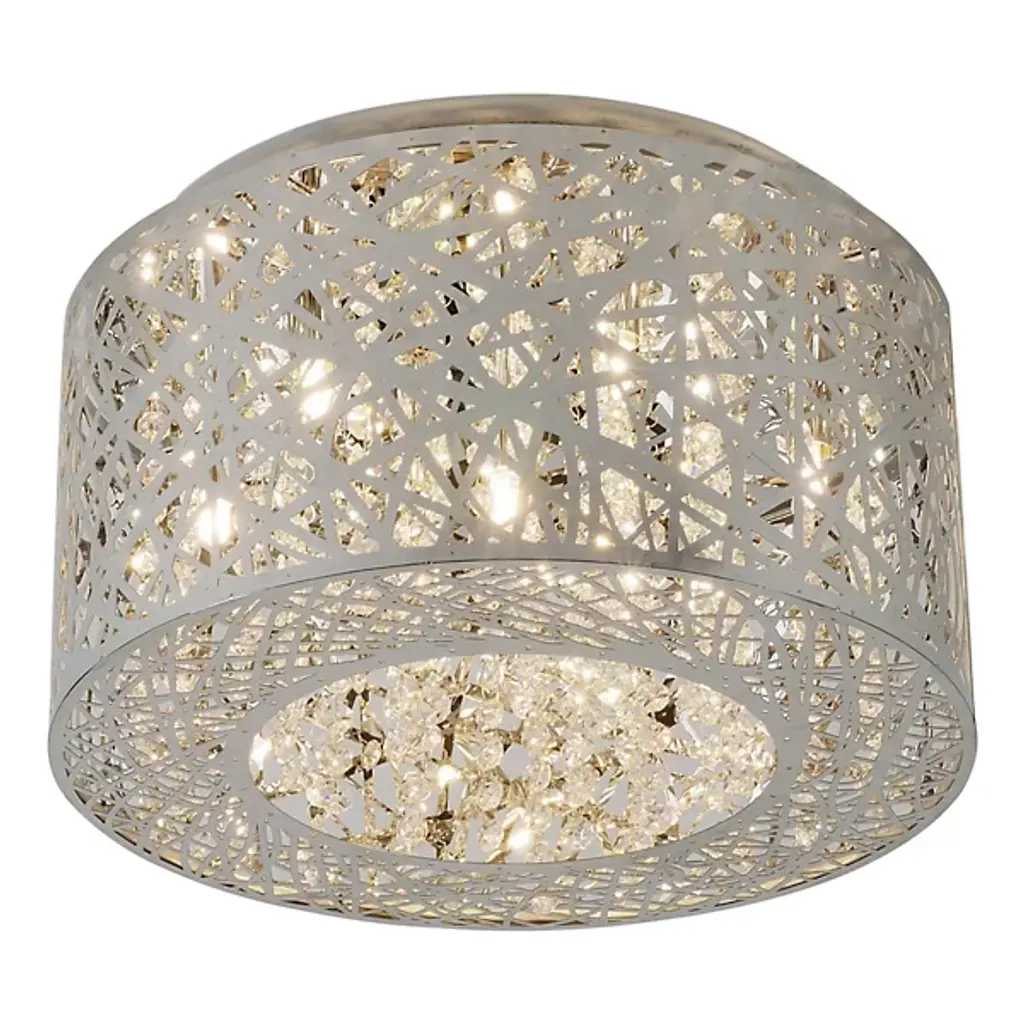 Intricate and endlessly appealing, the Karmelo Flushmount from Huxe instantly transforms the ambiance with a warm and vibrant wash of light. The drum-shaped shade mounts directly to the ceiling and is adorned with a dense and eye-catching pattern of lines on its surface. The interior of the piece consists of crystal and a set of crisp bulbs. The light brings the crystal to life, sending a comforting illumination throughout the piece and the room.