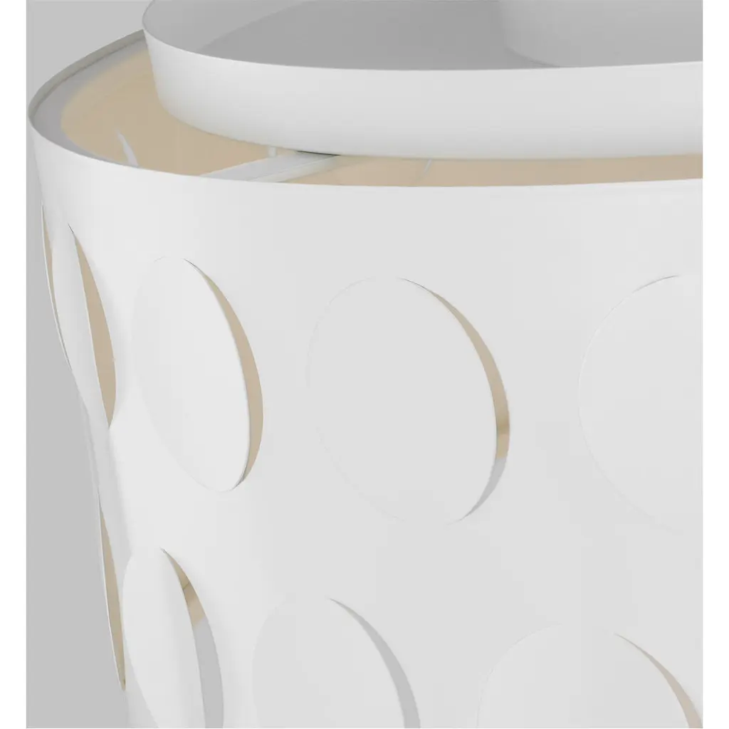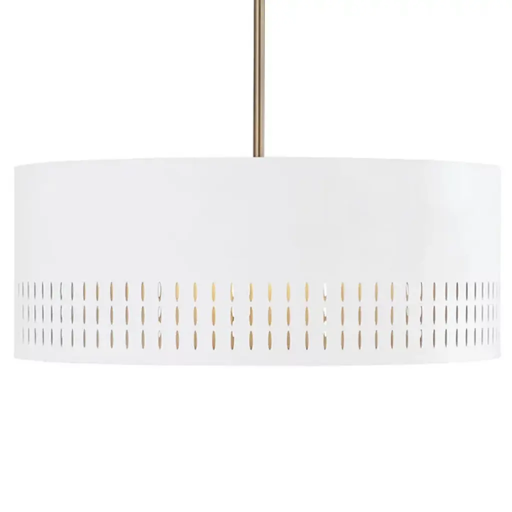 Dots are iconic to the kate spade brand·a simple and playful graphic motif. Dottie takes an iconic kate spade dot motif and cuts it into metal·creating a playful ambient light effect. A classic metal drum shade with an extra twist of perforated pattern. A matte white steel shade with an etched glass diffuser creates a gentle muted glow. Ideal for any hallway, foyer, bedroom, bathroom, or wherever overhead illumination is needed in transitional settings.