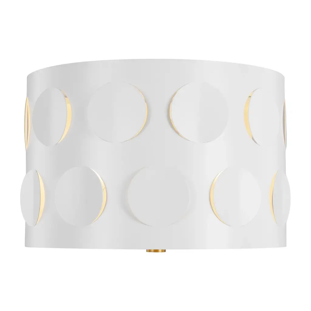 Bring a touch of playfulness and classic sophistication to your space with the Kate Spade New York Dottie Flush Mount from Visual Comfort & Co. This unique flush mount boasts an iconic dot motif, cut into the metal, that creates a charming ambient light effect. The classic metal drum shade and etched glass diffuser perfectly frame the muted glow, making it a great choice for transitional settings in hallways, foyers, bedrooms, bathrooms, or any space in need of overhead illumination. Highlights