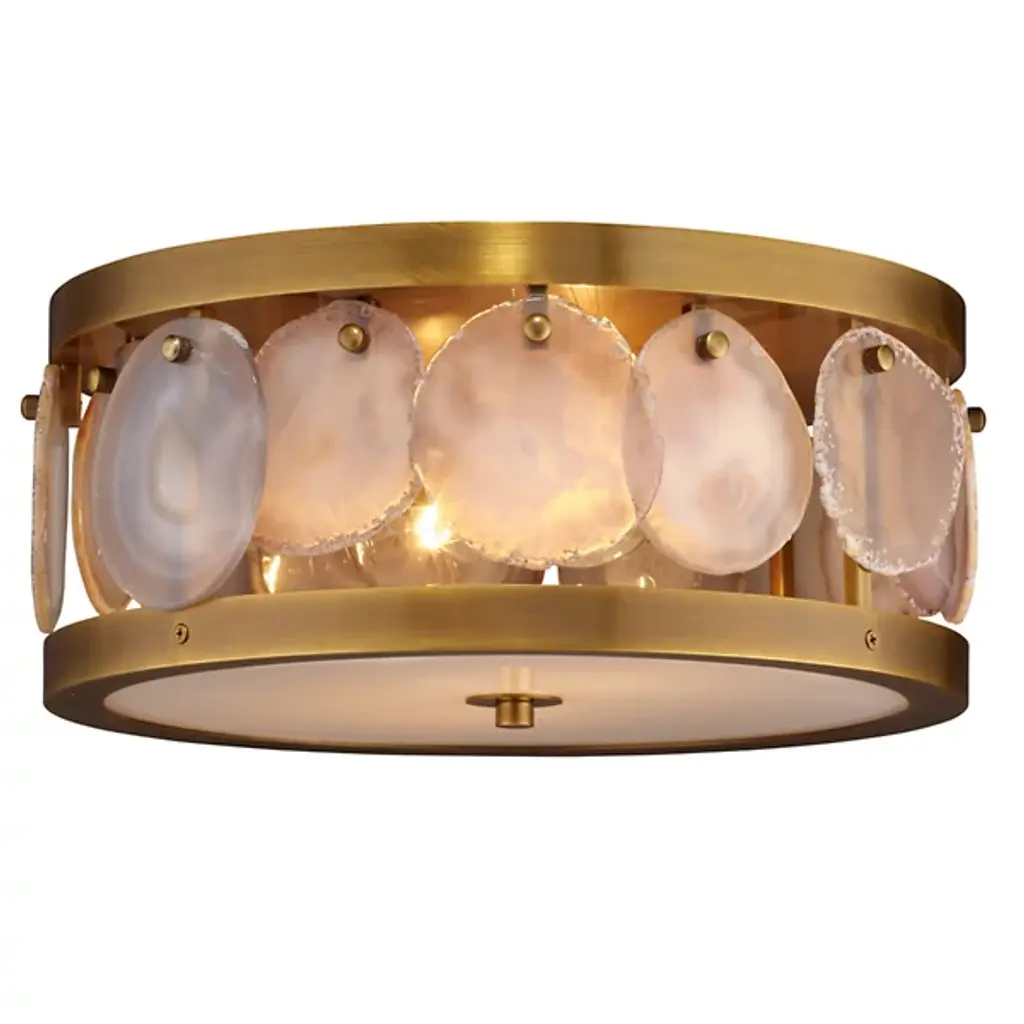 Lloyd Medium Round Flush Mount in Soft Brass with Alabaster