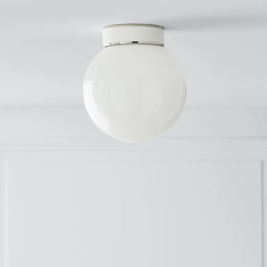 The Monroe small flush mount is inspired by graphic enameled metal jewelry and decorative accessories from kate spade with a nod to late 50s atomic era colorful designs. Monroe exhibits clean lighting profiles and dressed them up with painted sections and metal accents.