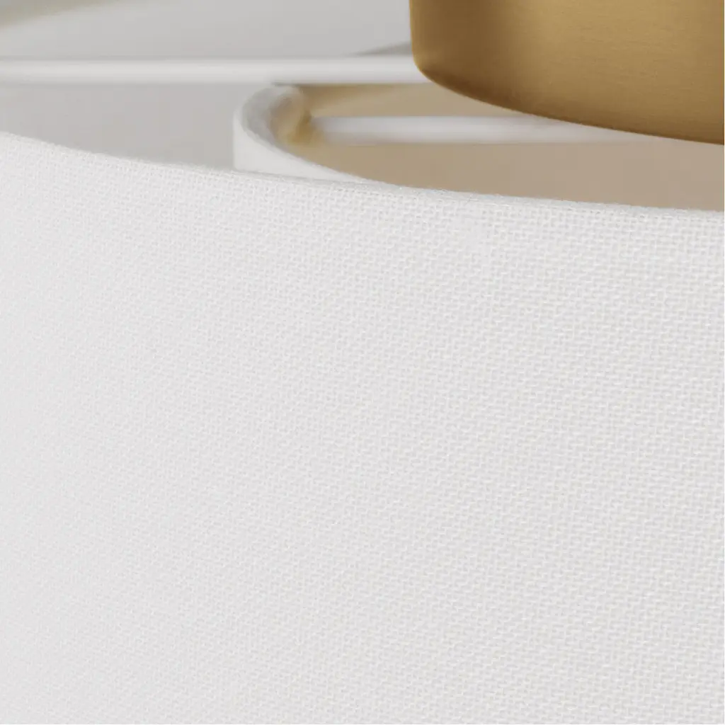 Inspired by kate spade whimsical geometry and playful lines, Sawyer has a striking silhouette with graphically taped shades. The Sawyer flush mount fixture by kate spade New York is available in burnished brass and polished nickel finishes.
