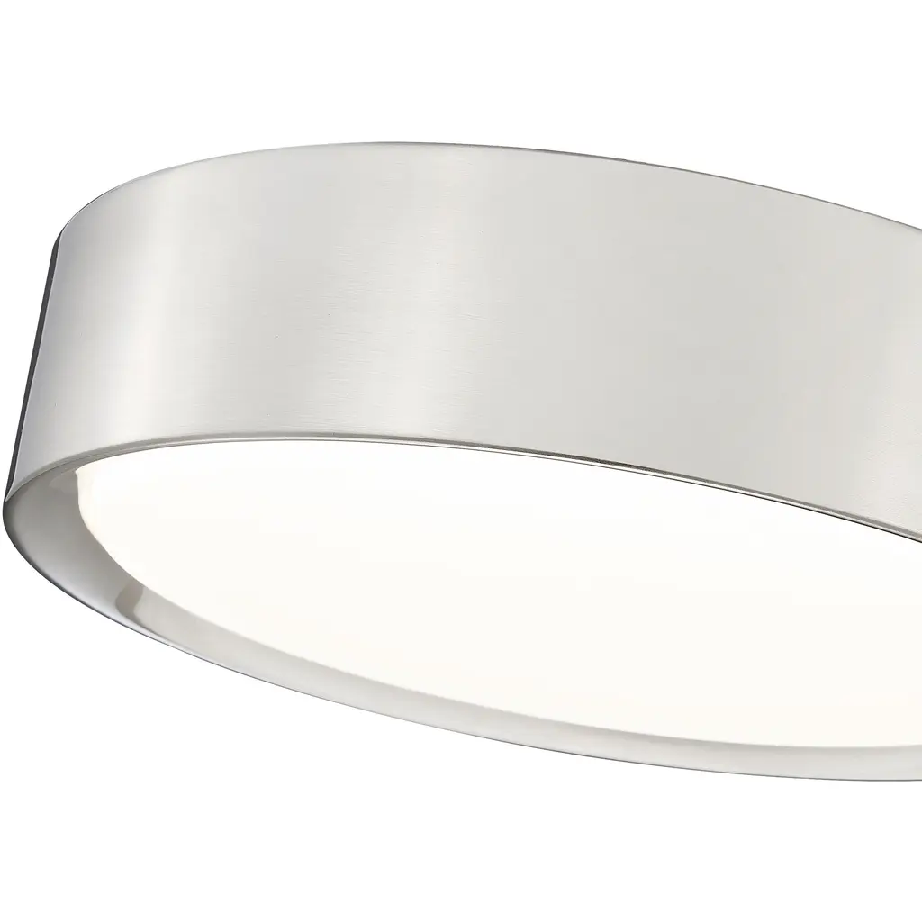 Clean and refined, this modern flushmount LED ceiling light creates a crisp look and offers dimmable ambient illumination. It's perfect for a bedroom or den, featuring a frosted acrylic diffuser for soft, energy efficient illumination. A brushed nickel finish lends sleek elegance, blending beautifully in a range of decor styles and color palettes.