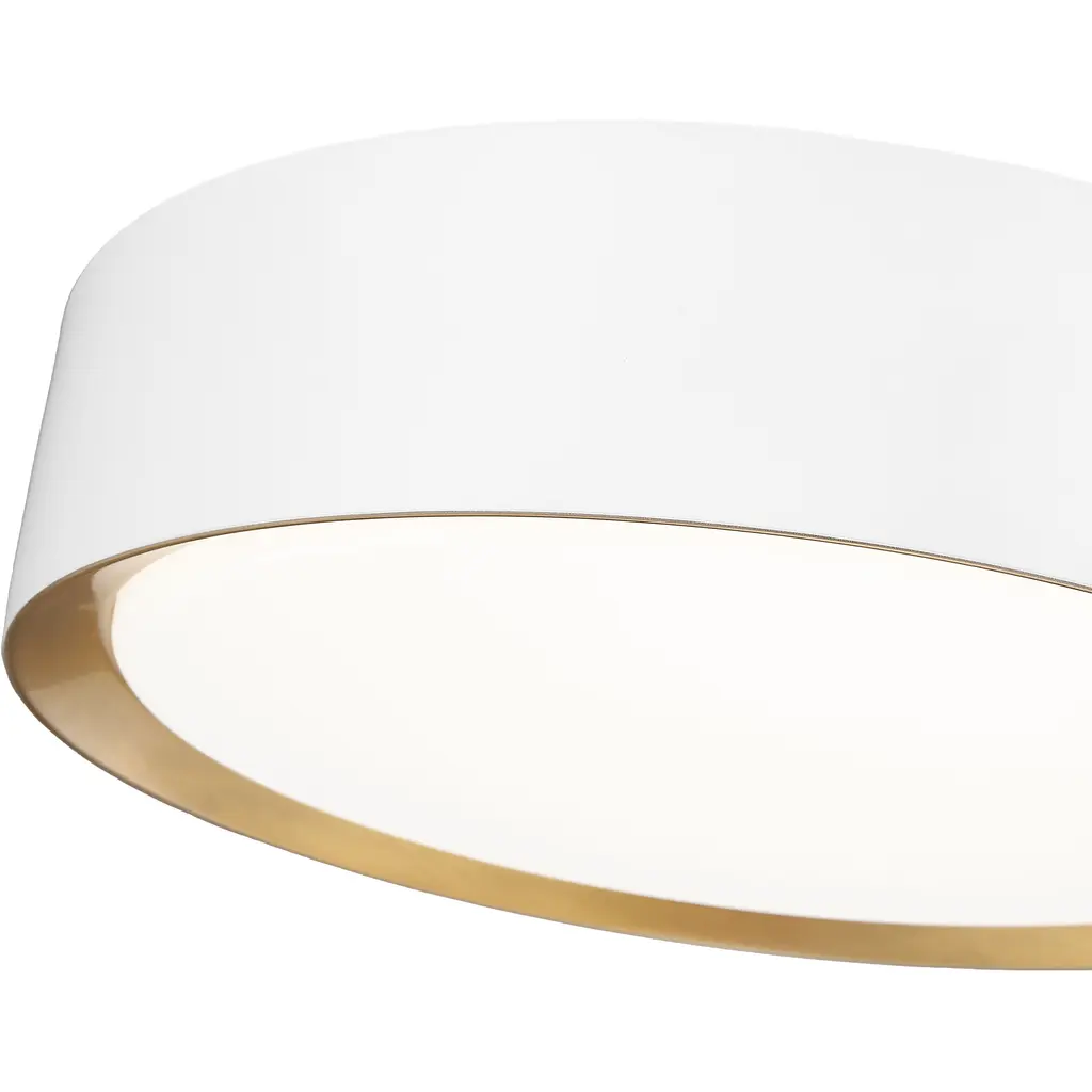 Frosted acrylic and a matte white outer finish create a soft, refined look and feel for this modern one-light flush mount ceiling light. An inner finish of modern gold adds richness and warmth, perfect for understated, sophisticated decor. The light offers integrated LEDs for energy efficient illumination in any room.