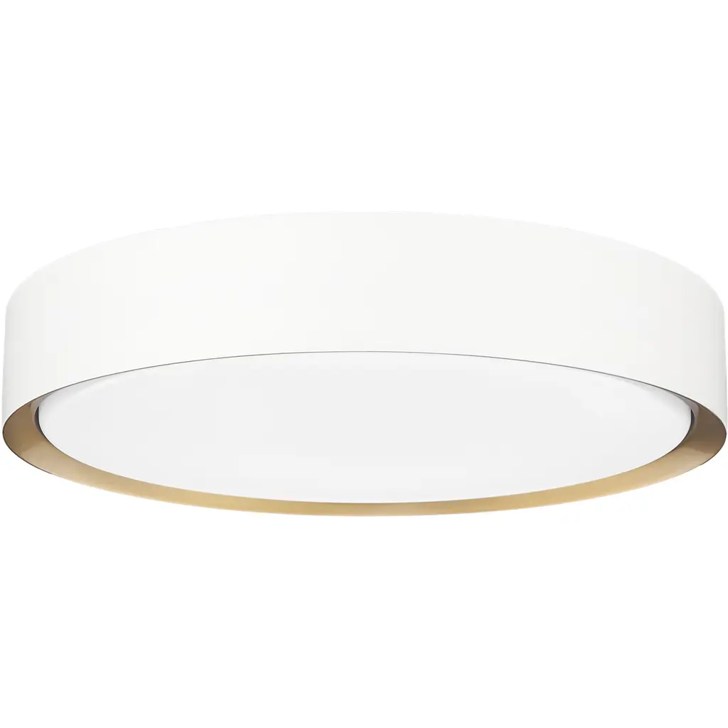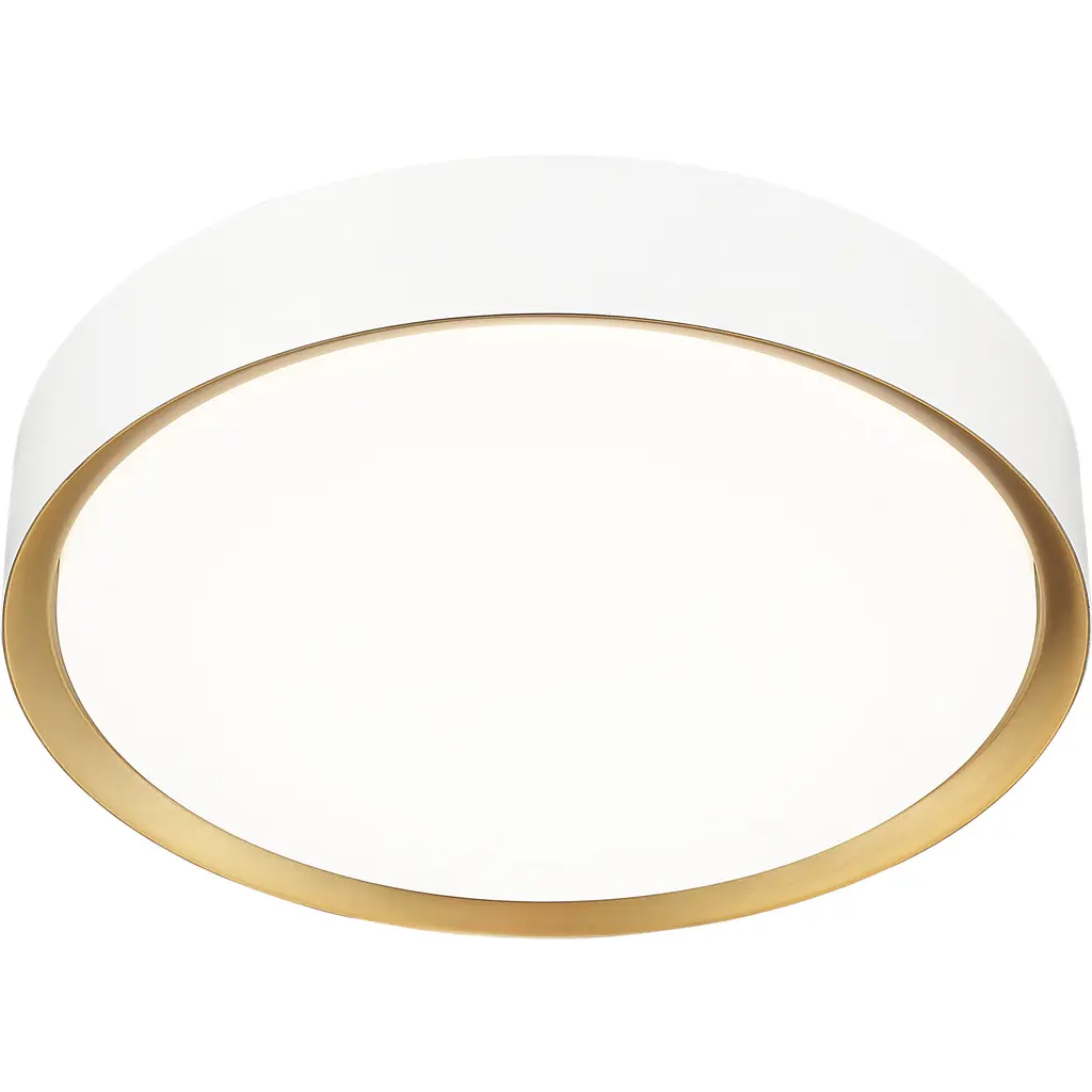 Matte white pairs with modern gold to create an alluring presentation for this modern one-light flush mount ceiling light. The white exterior and warm gold interior create a soft, graceful style, while delivering an inviting presentation. A frosted acrylic diffuser softens illumination from integrated LEDs, offering seamless style and energy efficiency.
