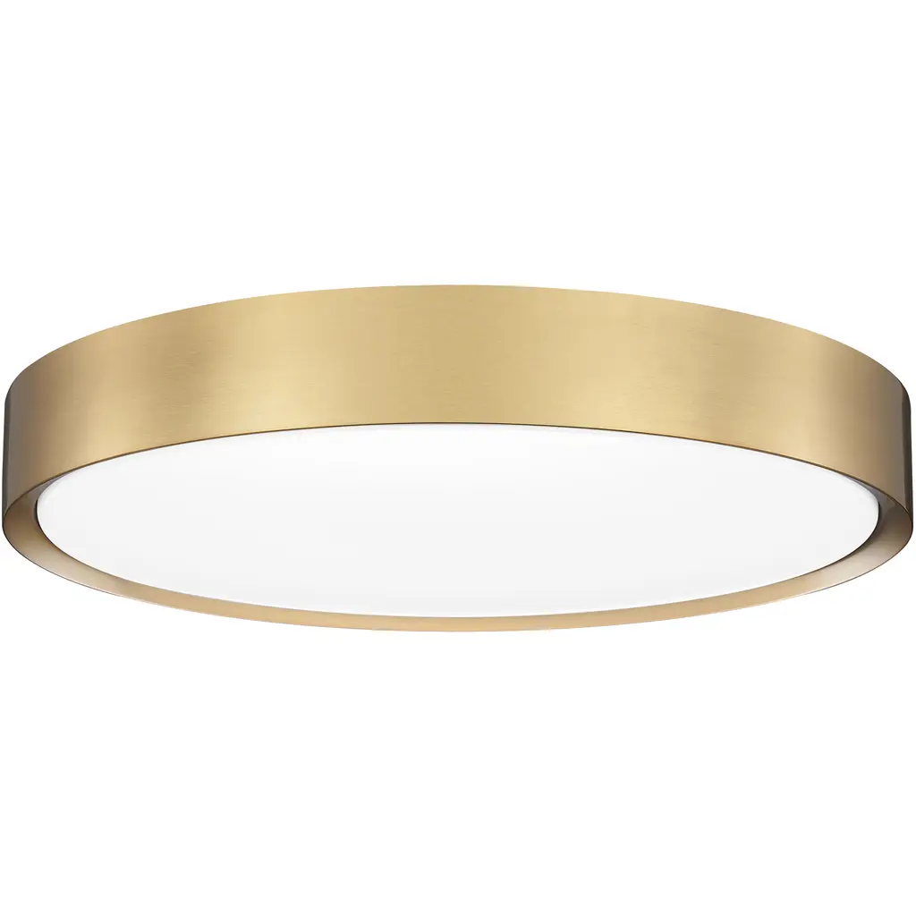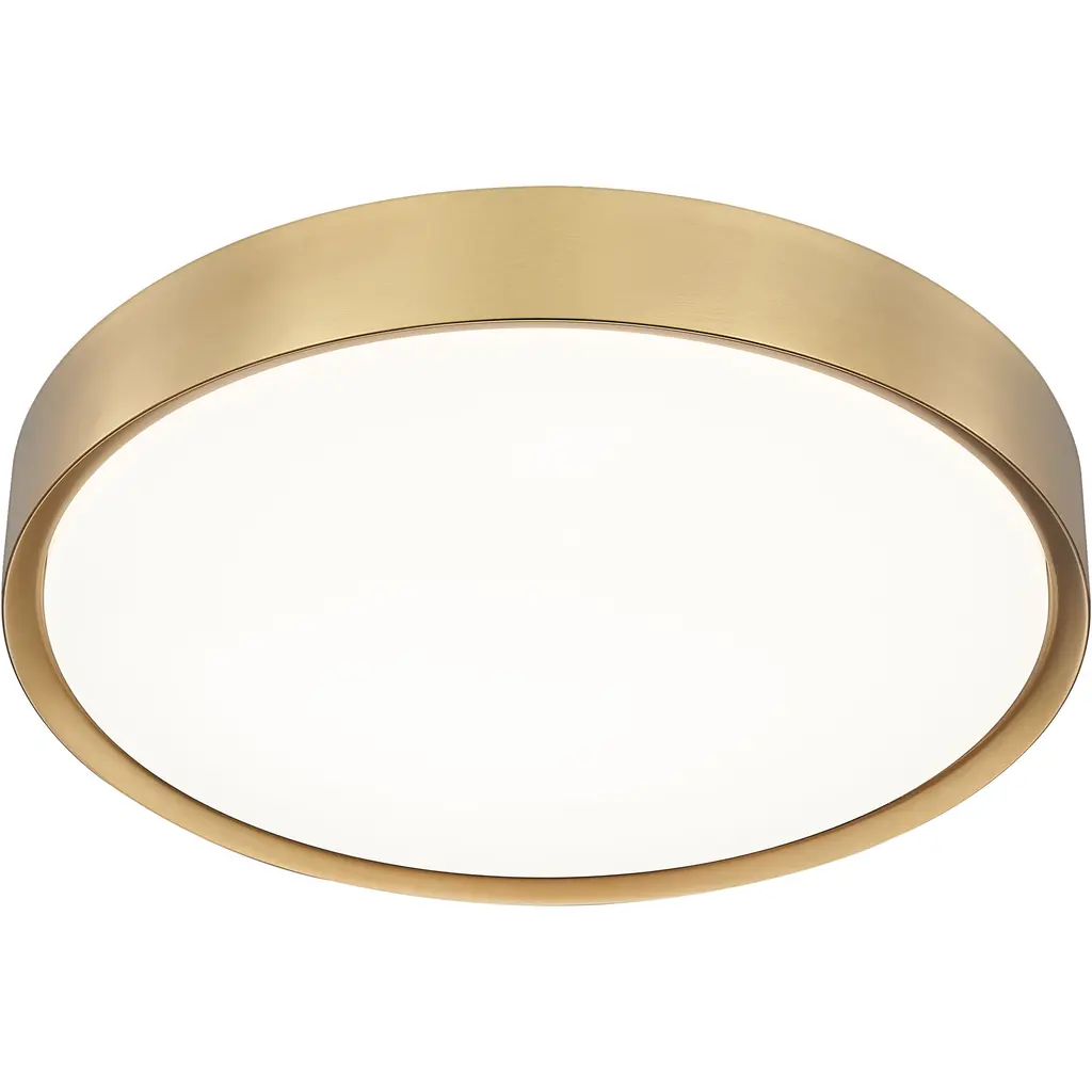 Modern gold finishing introduces a sense of sophistication to the simple silhouette of a modern one-light flush mount ceiling light. Its round profile is paired with a slightly domed frosted acrylic diffuser, delivering soft, inviting illumination for a living area or bedroom.