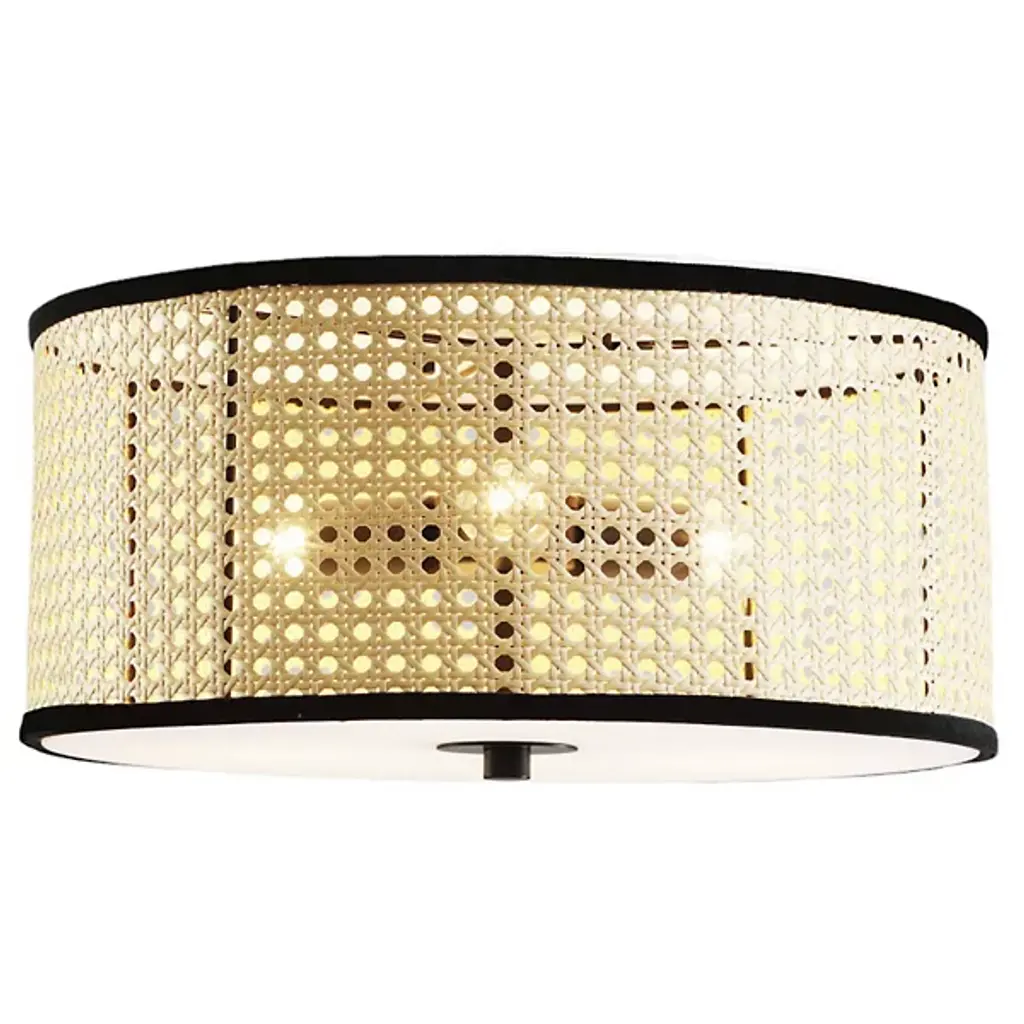 Introducing the Keely Flushmount from Alder & Ore, where bohemian elegance meets modern practicality. This lamp features a chic black metal base accented with exquisite velvet stitching around the rim. It combines style with functionality through a convenient USB charging port. Perfect for any setting, from modern to bohemian, it adds a sophisticated touch to living rooms, bedrooms, or home offices. Enhance your decor with this versatile and beautifully crafted lighting solution, designed to elevate the ambiance of any space.