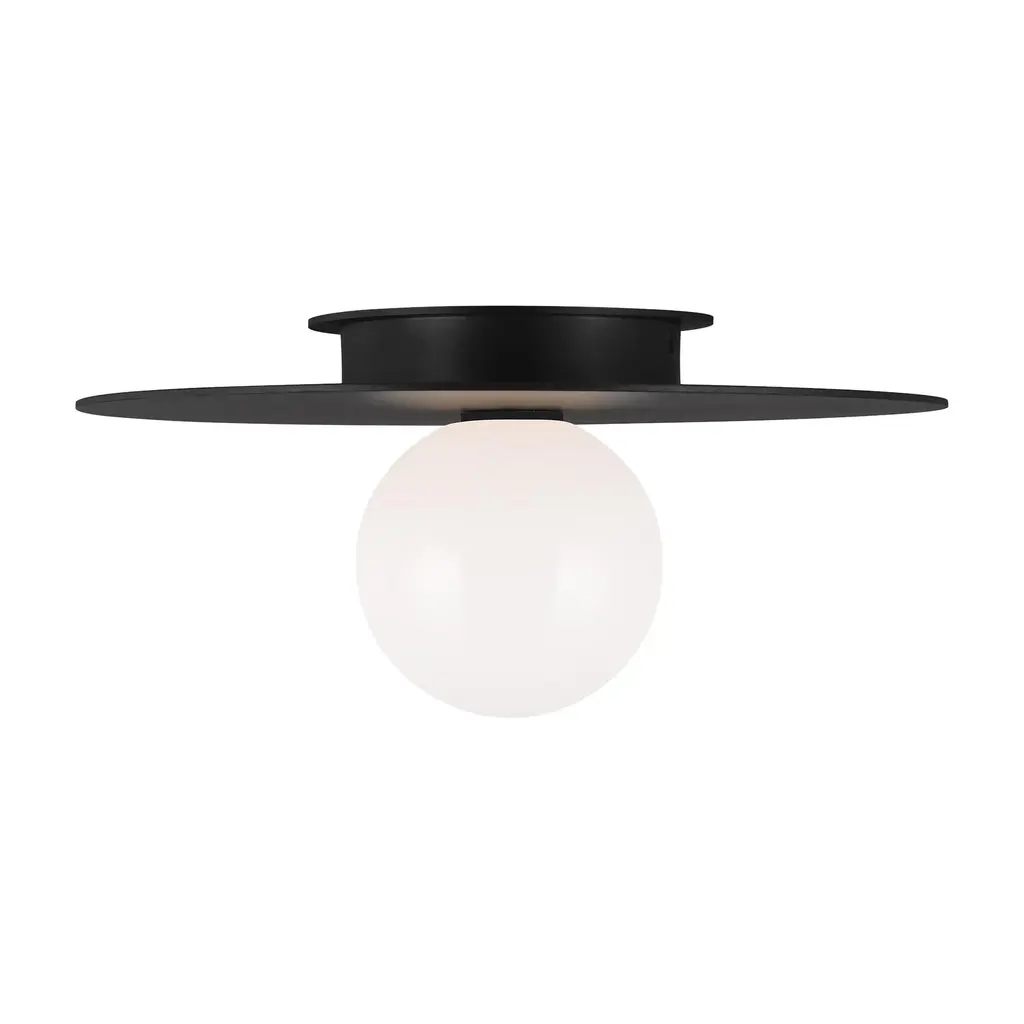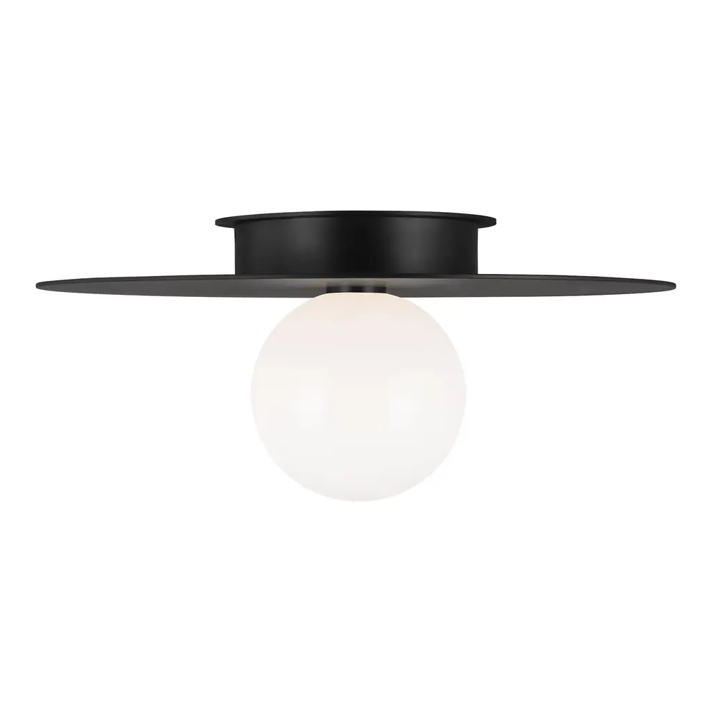 The Kelly Wearstler Nodes Flush Mount from Visual Comfort & Co is a luxurious and sophisticated choice, offering a modern yet timeless design with its simplistic cylindrical shape. Crafted from durable steel and paired with a delicately textured milk glass globe, this gentle fixture will evenly disperse ambient light around your space and make a striking statement in any living or dining room. Highlights Designed by celebrated interior designer Kelly Wearstler Damp Rated and suitable for use in bathrooms and covered patios Milk white glass mouth blown by master craftsmen
