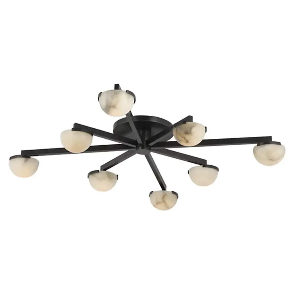 Pedra Extra Large Staggered Arm Flush Mount in Polished Nickel with Alabaster