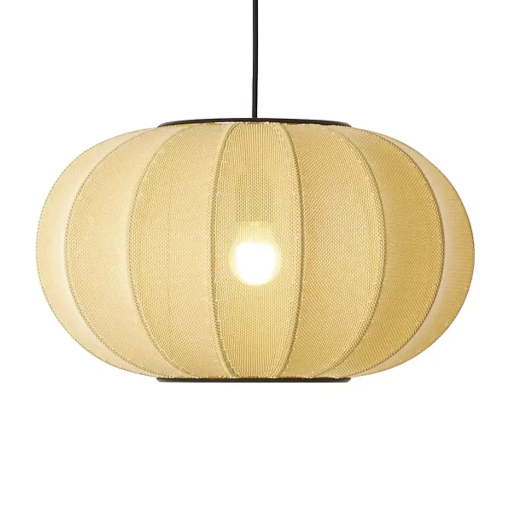 The Knit-Wit Wall / Flushmount from Made By Hand reimagines traditional knitting in a contemporary lighting context. Designed by ISKOS-BERLIN, its woven construction allows light to filter softly through the yarn pattern, creating a distinctive and decorative glow. With its warm character, lightweight form, versatile shapes, and broad color palette, the Knit-Wit collection brings subtle texture and ambiance to any environment—complementing both private residences and public interiors with timeless, tactile charm.