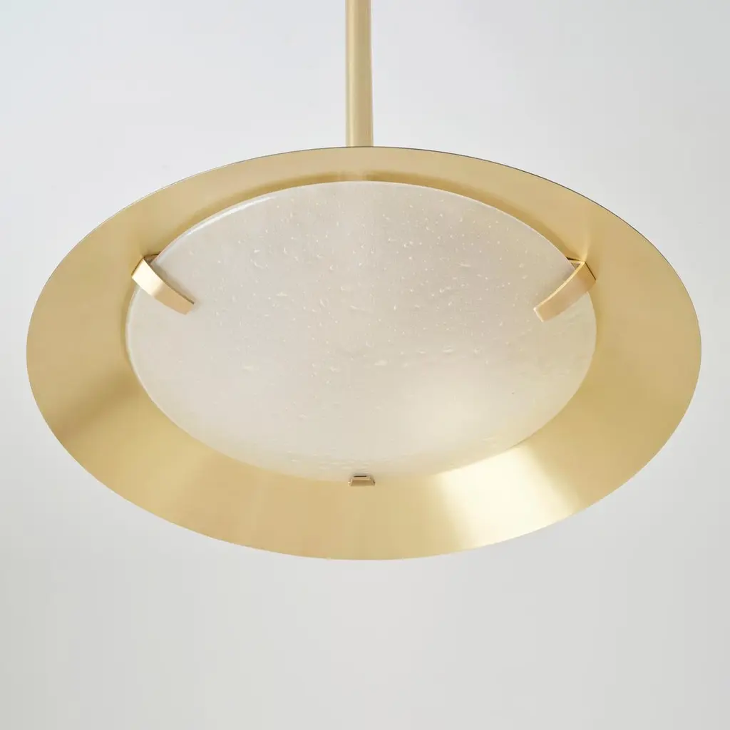 The Kono ceiling light is inspired by time tested shapes and lines but has a touch of organic modern via the incorporation of our signature Murano Bubble glass. With a mix of classic and contemporary, a two-tone shade with many color combinations and the ability to be either a flush mount or pendant, this versatile piece can be used in many settings.The primary images show the fixture in satin brass and Mediterranean Blue and the following pictures show it in a variety of featured images.Starting at $ 6,800 for standard finishes.Starting at $ 7,600 for premium finishes.LEAD TIME:10-12 weeks plus shipping.CUSTOMIZATION:Each fixture is hand crafted in Italy and is available in any of our 10 finishes and 8 enamel colors. Compatible with our Murano Bubble glass and Murano frosted glass. Can be installed as a flush mount or on a stem.DIAMETER: 24"HEIGHT: 9"-As shown. Height from 6.5" and up.ELECTRICAL:Three E12 base LED bulbs up to 40WUL ListedModel #: LTZ1004B