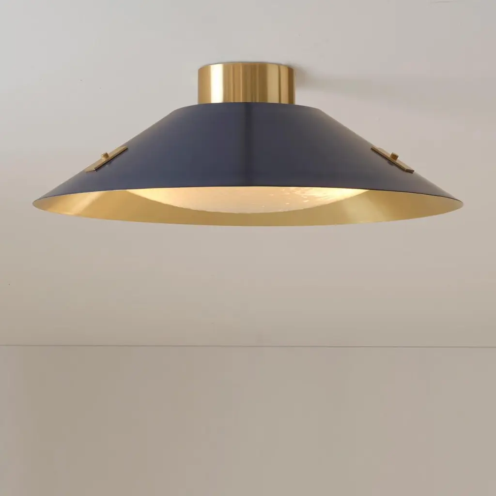 Kono Flushmount By Gaspare Asaro. Satin Brass And Mediterranean Blue