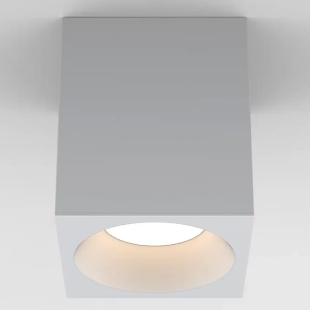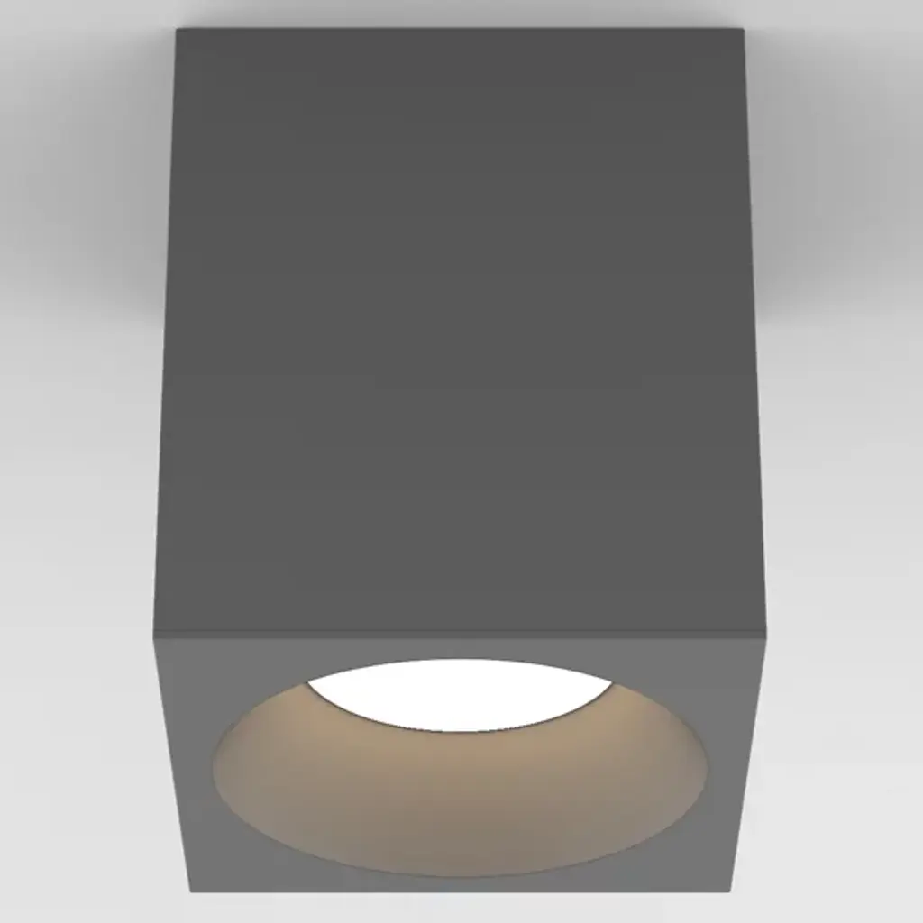 Simple and structural. The Kos Square LED Flushmount by Astro Lighting exhibits refined minimalism with its stark design. Crafted from aluminum, a rectangular cube extends from the ceiling, a circular cutout at its bottom edge funneling light downward. Suited with an energy-efficient LED light source, a recessed diffuser within the cubed shade softens the light and reduces glare to create a pleasant ambiance. Ideal for both damp and dry locations, this fixture lends a touch of simple style to any space in the home.