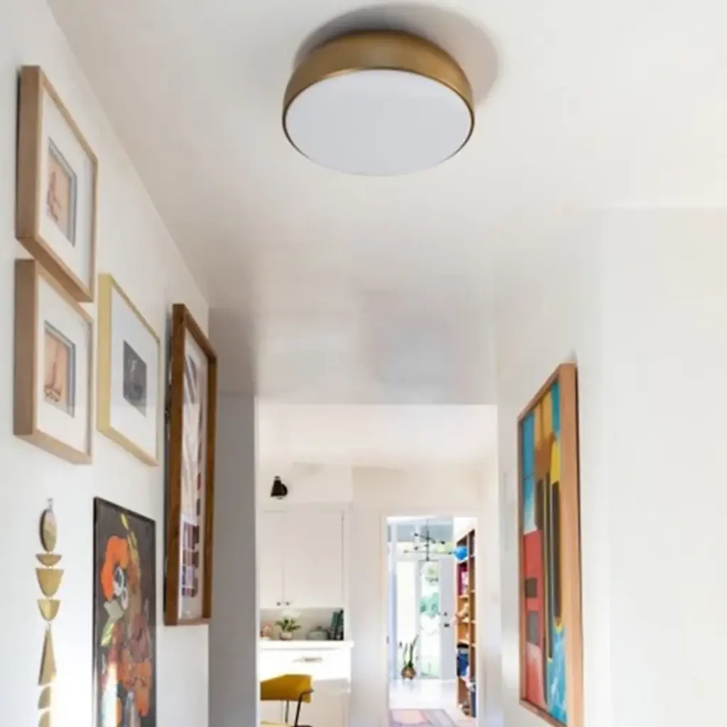 The Kosa LED Flushmount 277V from Visual Comfort Modern, formerly known as Tech Lighting, extends a stylish, softly sculptural presence through its surroundings. A subdued flush mount seats LED lamping inside a sleek bowl-shaped shade, while a circular diffuser peeks out through the open base of the shade, stepping slightly down to contrast its translucent texture with the shade’s sleek, supportive surface. This surface obscures direct downlight, extending a pleasing wash of warm light below the fixture.