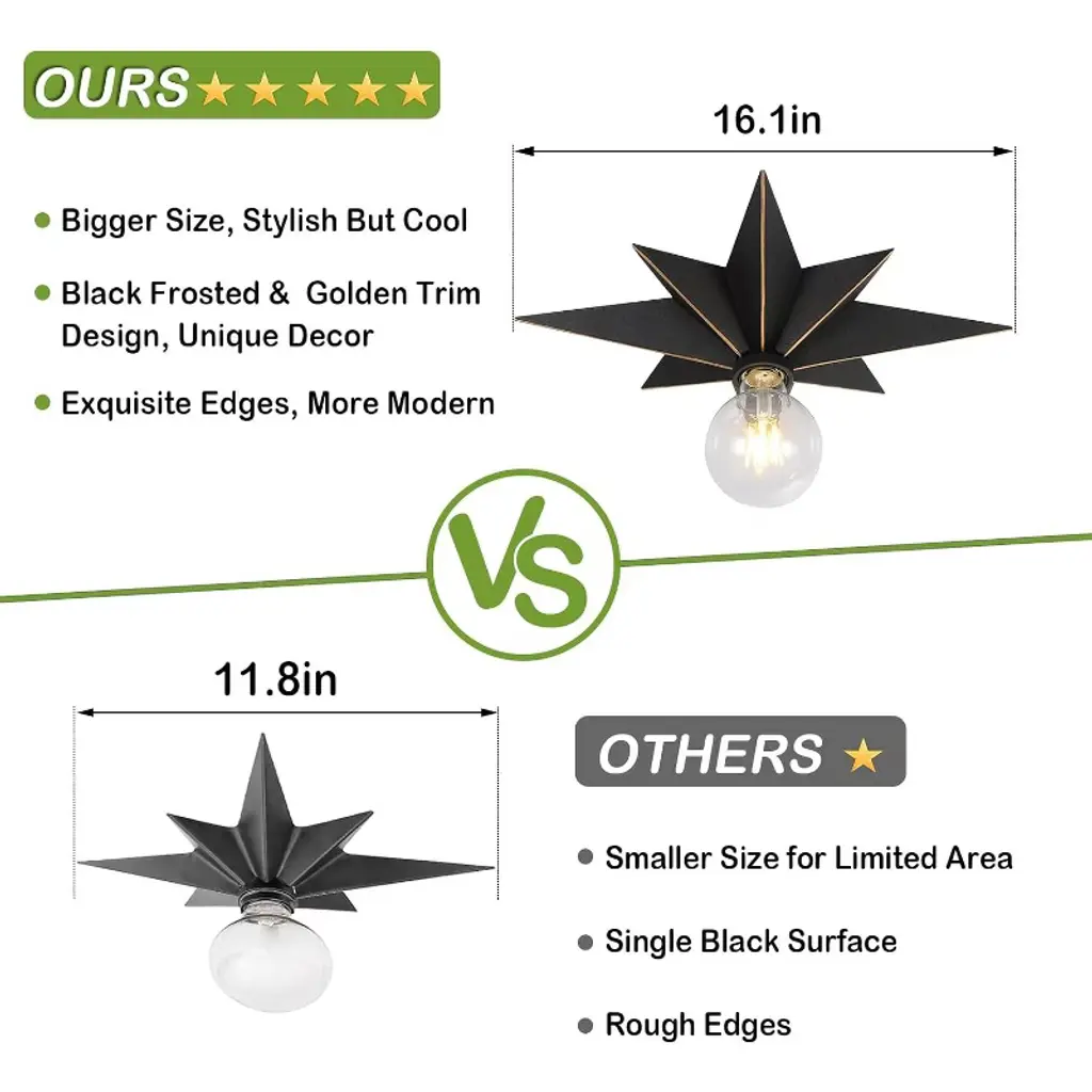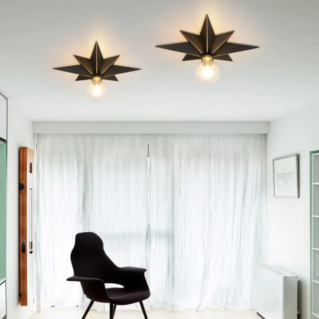 The industrial flush mount ceiling light can be used as CEILING LIGHT, WALL LAMP and VANITY LIGHT. Classic yet modern star design, easily gives off a mid-century vibe! This creative ceiling light fixtures is not only the lighting, but also the art of decoration.