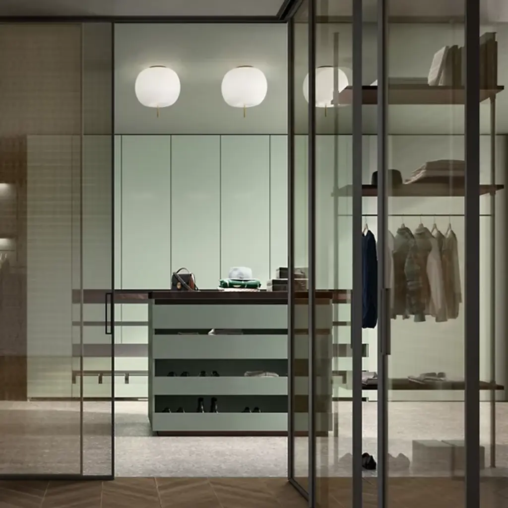 Translating to 'skewer' in Japanese, the Kushi Flushmount from kdln delights in its evocative form, one that brightens to set an enticing mood. Design duo Alberto Saggia & Valerio Sommella bring a design approach centered on formal, material, technological, and functional innovation. Here, Saggia and Sommella underscore the formal beauty of contrasting opal glass with bold metal. Artisans mouth blow opal glass in two layers to achieve a plump, delectable form. In skewer fashion, a metal accent pierces through the glass shade, giving it a floating effect. A clean, sumptuous light filters through the glass with minimal glare.