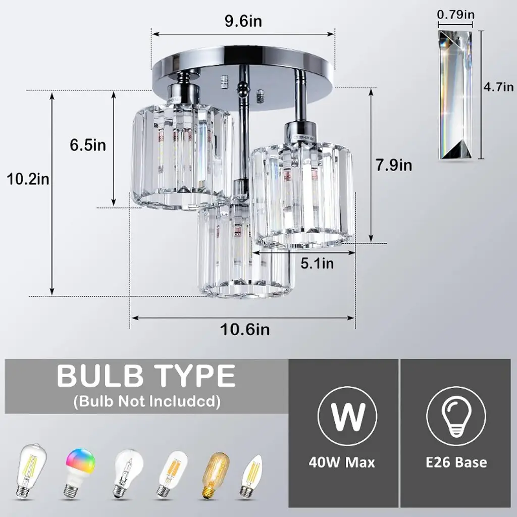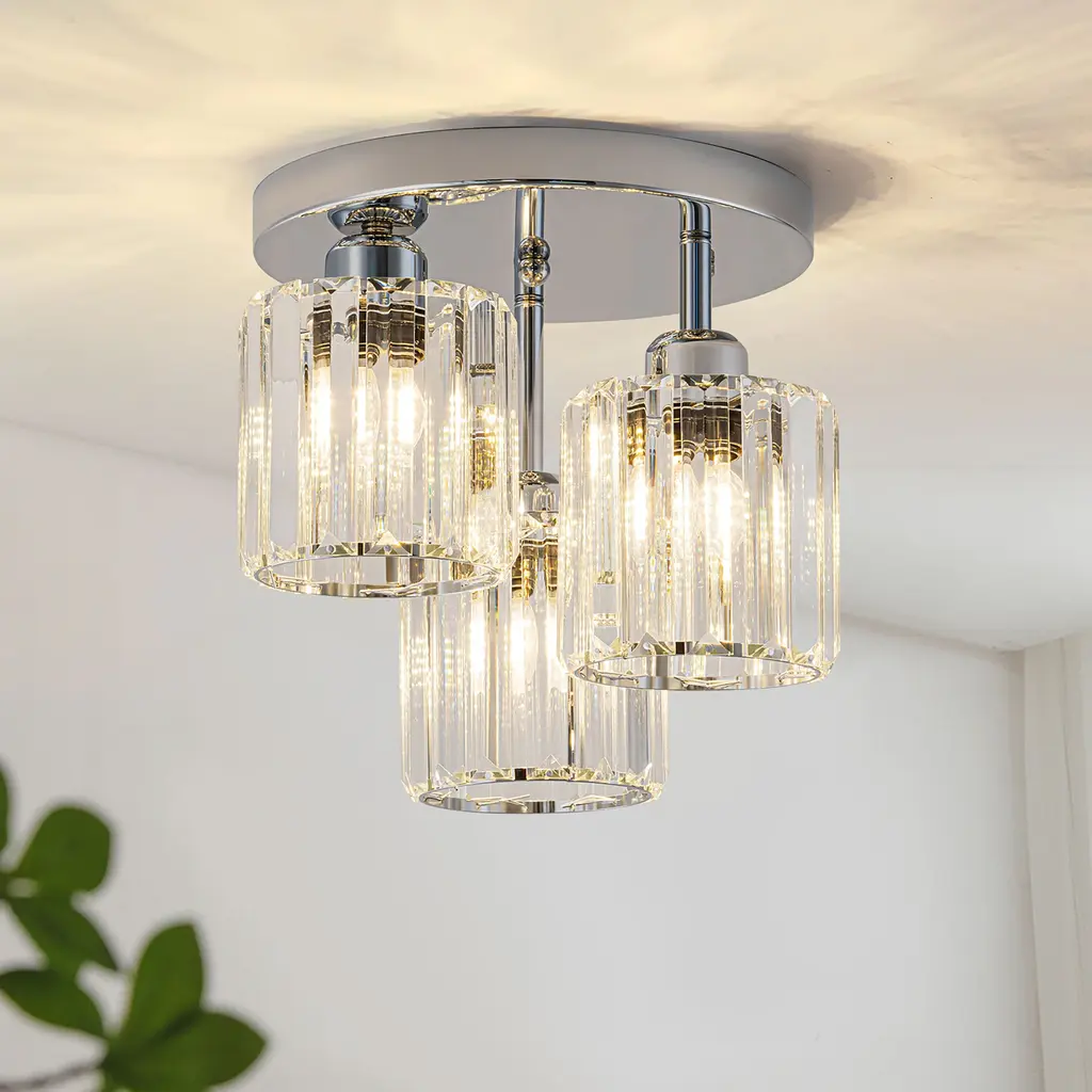 Kwpzqeb Flush Mount Ceiling Light Fixtures, 3-light Ceiling With Crystal Lampshade, Flush Mount Light Fixture For Hallway, Kitchen, Entryway, Silver