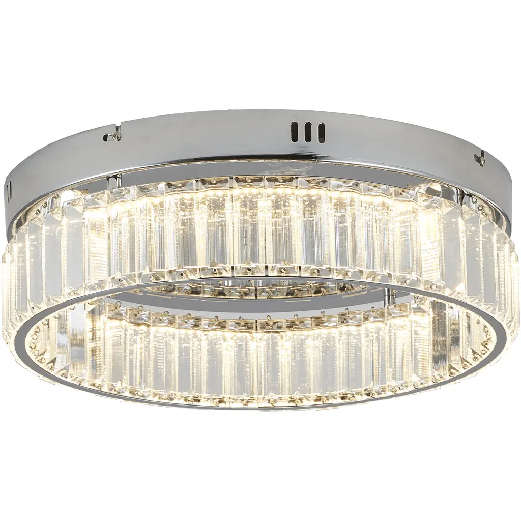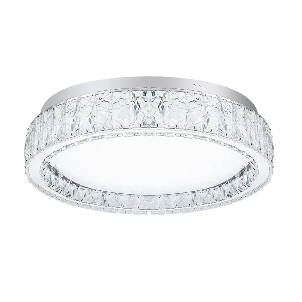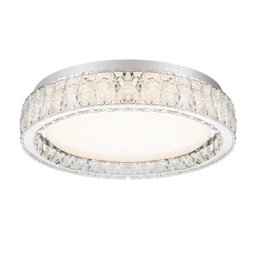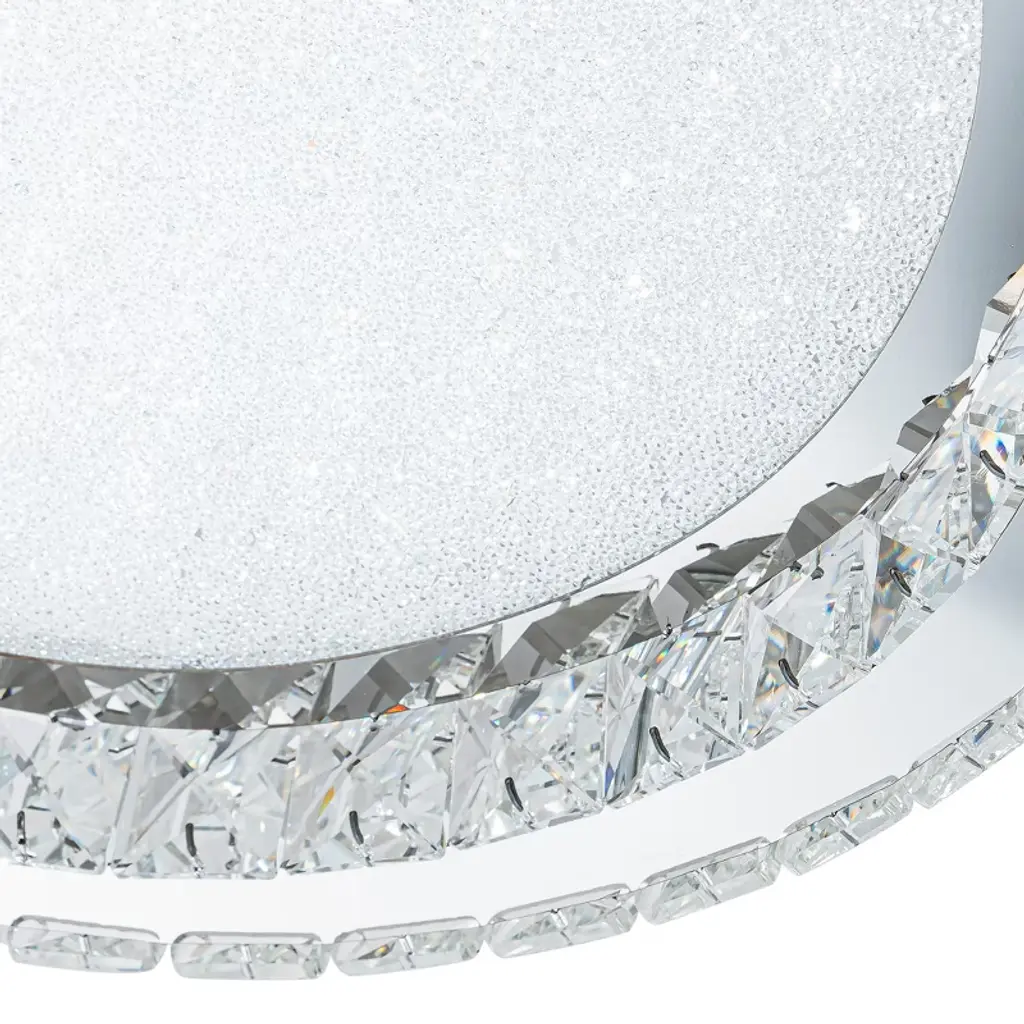 Real K9 crystal surround the low profile ceiling light, allowing light to through the clear beveled crystal, refracting dazzling shadow; inside the acrylic lampshade, glitter emits charming halo of bling; combined with polished stainless steel base and circular mirror stainless, the entire ceiling fixture sparkles like diamond in the sky—bright and elegant—making it the most attractive decoration in the home, immersing in the clean, modern ceiling fixture