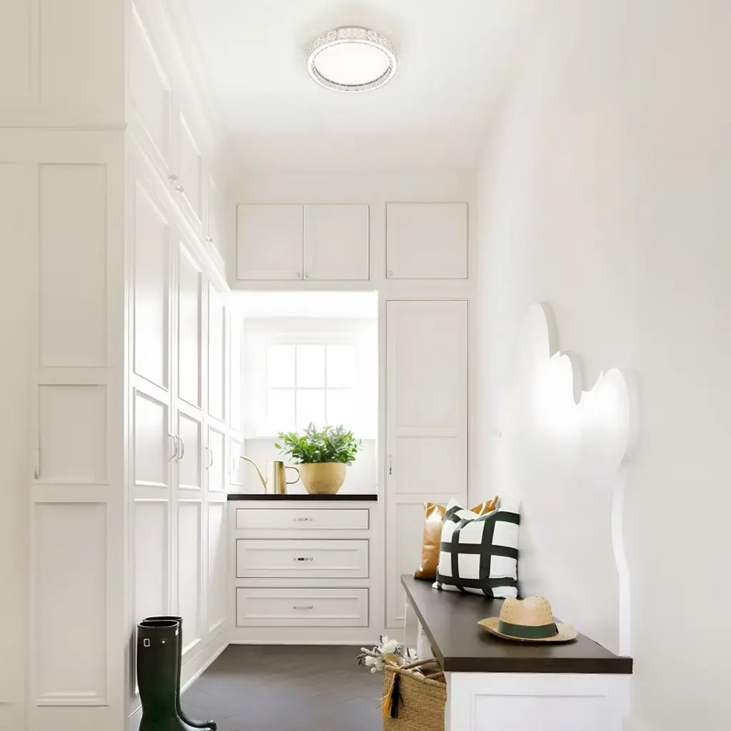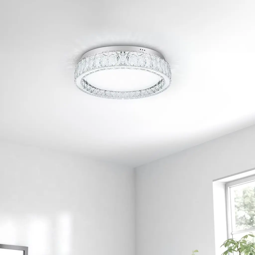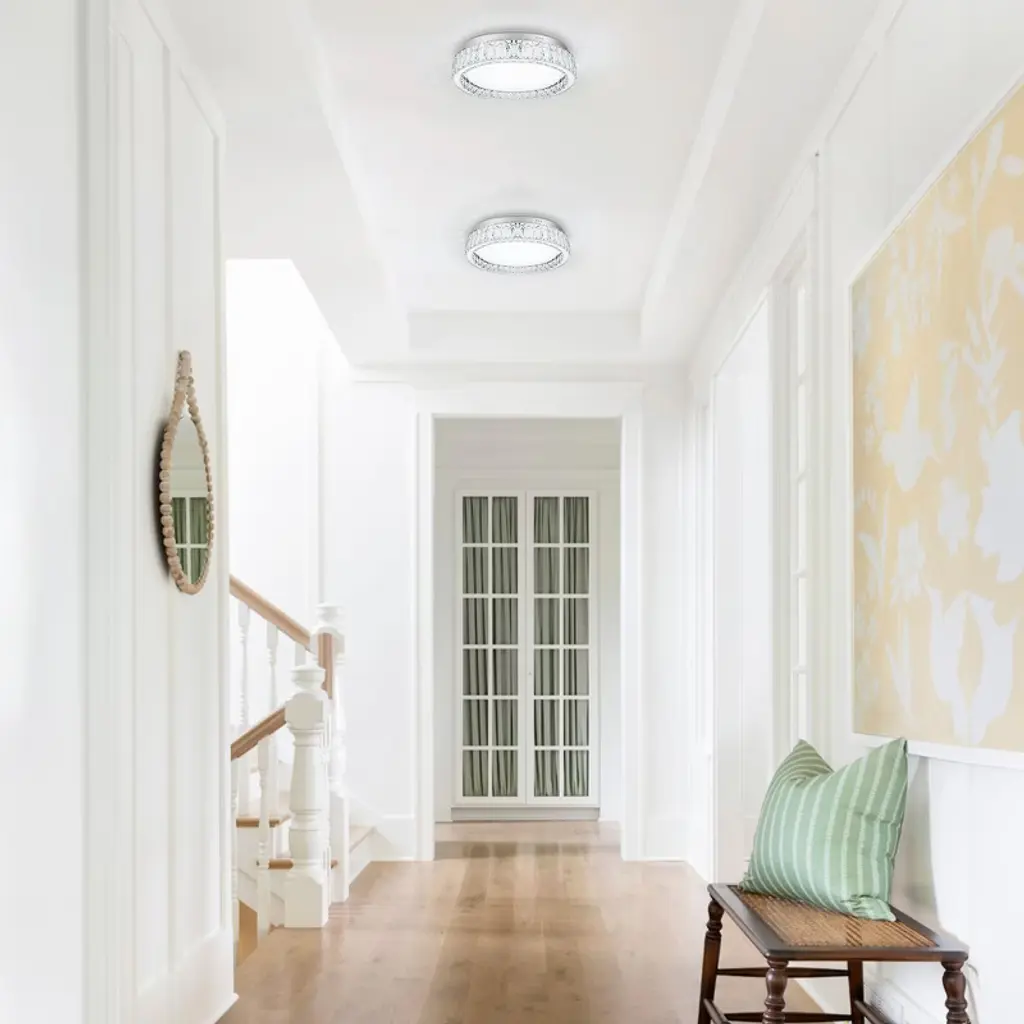 Lamqee 9.8" Crystal Flush Mount Ceiling Light Fixture, Dimmable Led Modern Close To Ceiling Light, Hallway Light Fixtures Round Ceiling Chandelier